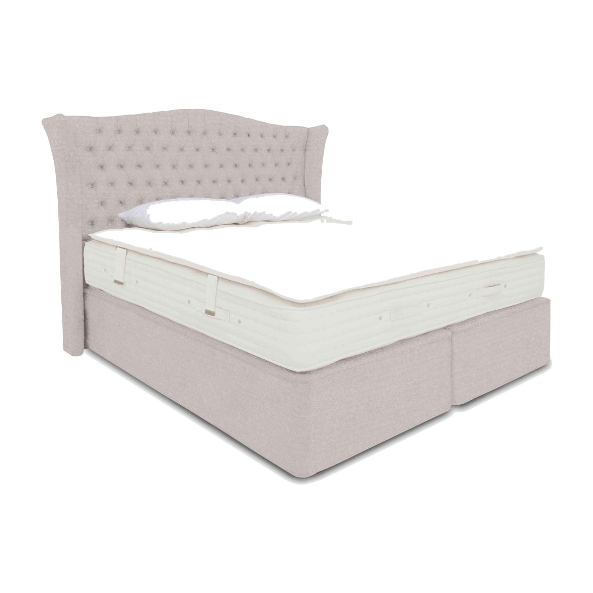 Enjoy royally comfortable sleep with the mattresses and divan beds in our Hypnos Bespoke Majestic collection. Mattresses are layered with 10-turn ReActivePro™ pocket springs, naturally luxurious Talalay latex, cotton, responsibly sourced British wool for cooling comfort and, perhaps best of all, sumptuous pillow tops. Pillow tops are detachable, which makes the mattresses in this collection turnable – we recommend seasonally – for comfort that lasts even longer. The collection also includes divan sets with optional storage drawers and ottoman compartments. The handcrafted Hypnos Bespoke Majestic range is exclusive to Furniture Village. Thanks to its sprung divan base, this divan set feels even more luxurious. The turnable pocket sprung mattress has a detachable pillow top. Only at Furniture Village. Why you'll love it Wonderful sprung divan set has a sumptuous mattress with a detachable pillow top. Mattress has 1800 10-turn ReActivePro™ pocket springs in king size for responsive support. Layers of Talalay latex offer a naturally luxurious feel. Filled with cotton and traceable British wool that meets the Responsible Wool Standard. Removable pillow top is filled with wool and Talalay latex. Woven damask sleep surface made from responsibly sourced unbleached cotton. Triple Edge Protection™ and 4 rows of hand side stitching for superior edge support. Mattress requires only seasonal turning for year-round comfort and support. Choice of medium, firm and dual medium/firm tension. Sprung, firm-edge platform-top divan base has 1000 pocket springs in king size. Optional storage drawers in a choice of configurations. In an exceptionally wide selection of upholstery fabrics. Handcrafted in England and only at Furniture Village. This sprung divan set is part of the Hypnos Bespoke Majestic range. What you need to know Headboard is available separately. Mattress type: Pocket spring. Depth: 33 cm. Weight:Single 31.1 kg, small double 41.1 kg, double 46.6 kg, king 54.5 kg and super king 65.4 kg. Firmness: Medium and firm. Dual tension available in king and super king sizes. Springs: 1800 in king size. Pillow top: Yes – filled with wool and Talalay latex. Fillings: Wool, Talalay latex and cotton. Cover: Cotton, viscose and flax. Requires turning: Yes. Base type: Sprung, firm-edge platform-top base with optional storage. Sizes: Single, small double, double, king, super king. Mattress care:Air for 4 hours before using to remove any odour. Indentations caused by settlement of fillings or body weight are normal and are not considered defects. If used on a slatted bed frame, the space between slats must be no wider than 7.5 cm. Spaces wider than this may cause excess dipping of the mattress and invalidate the guarantee. Always use a mattress protector. Rotate regularly. Divan base care: Clean upholstery weekly using a soft brush or vacuum with the curtain attachment. Professional cleaning advised for oil- and grease-based stains. Some fabrics can show wear on areas of more use or in direct sunlight.