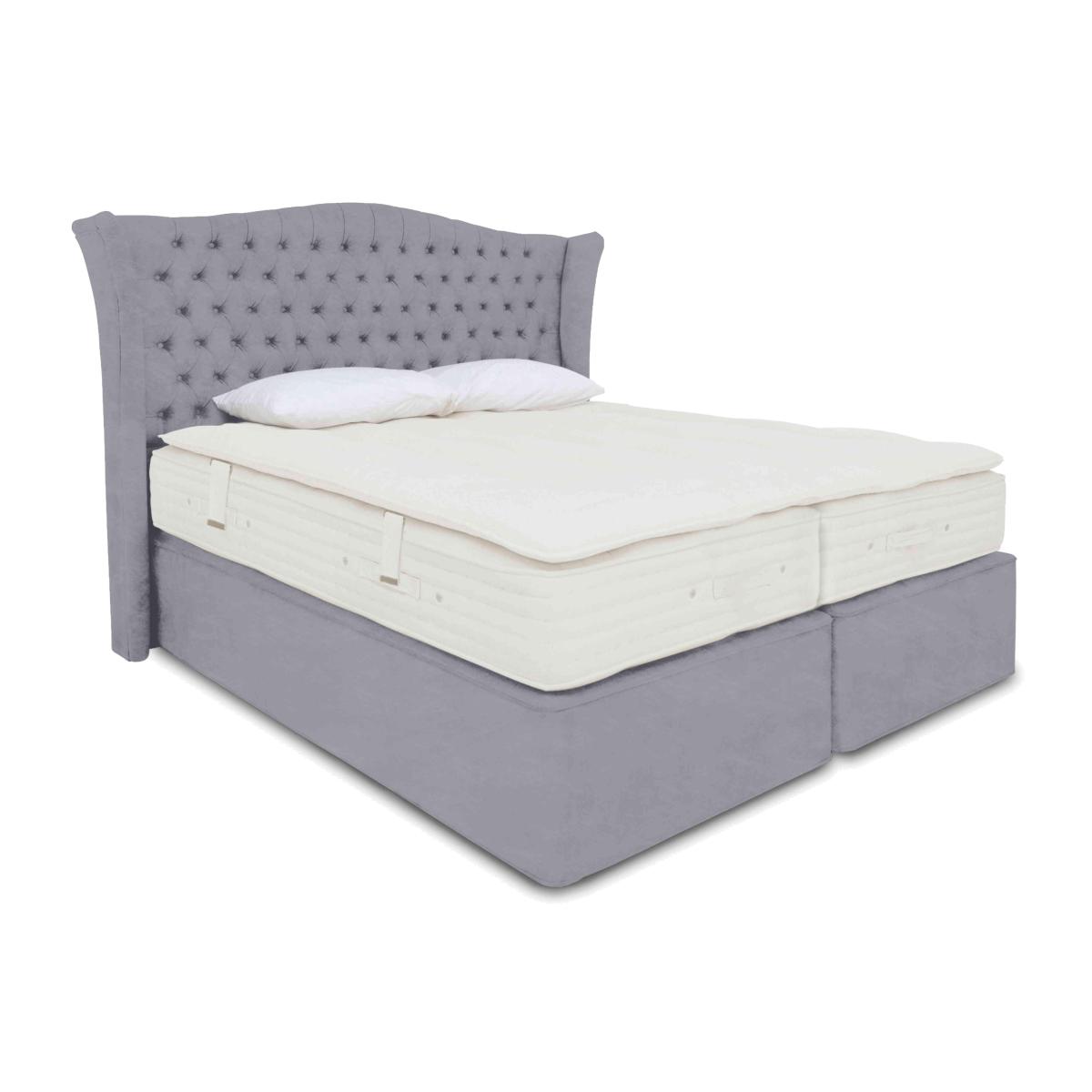 Enjoy royally comfortable sleep with the mattresses and divan beds in our Hypnos Bespoke Majestic collection. Mattresses are layered with 10-turn ReActivePro™ pocket springs, naturally luxurious Talalay latex, cotton, responsibly sourced British wool for cooling comfort and, perhaps best of all, sumptuous pillow tops. Pillow tops are detachable, which makes the mattresses in this collection turnable – we recommend seasonally – for comfort that lasts even longer. The collection also includes divan sets with optional storage drawers and ottoman compartments. The handcrafted Hypnos Bespoke Majestic range is exclusive to Furniture Village. Available in king and super king sizes, this zip and link divan set with sprung base promises ease of delivery as well as luxurious pocket sprung mattress with a detachable pillow top. Why you'll love it Wonderful sprung divan set has a sumptuous mattress with a detachable pillow top. Mattress has 1800 10-turn ReActivePro™ pocket springs in king size for responsive support. Layers of Talalay latex offer a naturally luxurious feel. Filled with cotton and traceable British wool that meets the Responsible Wool Standard. Removable pillow top is filled with wool and Talalay latex. Woven damask sleep surface made from responsibly sourced unbleached cotton. Triple Edge Protection™ and 4 rows of hand side stitching for superior edge support. Mattress requires only seasonal turning for year-round comfort and support. Choice of medium, firm and dual medium/firm tension. Sprung, firm-edge platform-top divan base has 1000 pocket springs in king size. Optional storage drawers in a choice of configurations. In an exceptionally wide selection of upholstery fabrics. Handcrafted in England and only at Furniture Village. This zip and link divan set is part of the Hypnos Bespoke Majestic range. What you need to know Headboard is available separately. Mattress type: Pocket spring. Depth: 33 cm. Weight:King 54.5 kg, super king 65.4 kg. Firmness: Medium, firm and dual tension. Springs: 1800 in king size. Pillow top: Yes – filled with wool and Talalay latex. Fillings: Wool, Talalay latex and cotton. Cover: Cotton, viscose and flax. Requires turning: Yes. Base type: Sprung, firm-edge platform-top base with optional storage. Sizes: King and super king. Mattress care:Air for 4 hours before using to remove any odour. Indentations caused by settlement of fillings or body weight are normal and are not considered defects. If used on a slatted bed frame, the space between slats must be no wider than 7.5 cm. Spaces wider than this may cause excess dipping of the mattress and invalidate the guarantee. Always use a mattress protector. Rotate regularly. Divan base care: Clean upholstery weekly using a soft brush or vacuum with the curtain attachment. Professional cleaning advised for oil- and grease-based stains. Some fabrics can show wear on areas of more use or in direct sunlight.