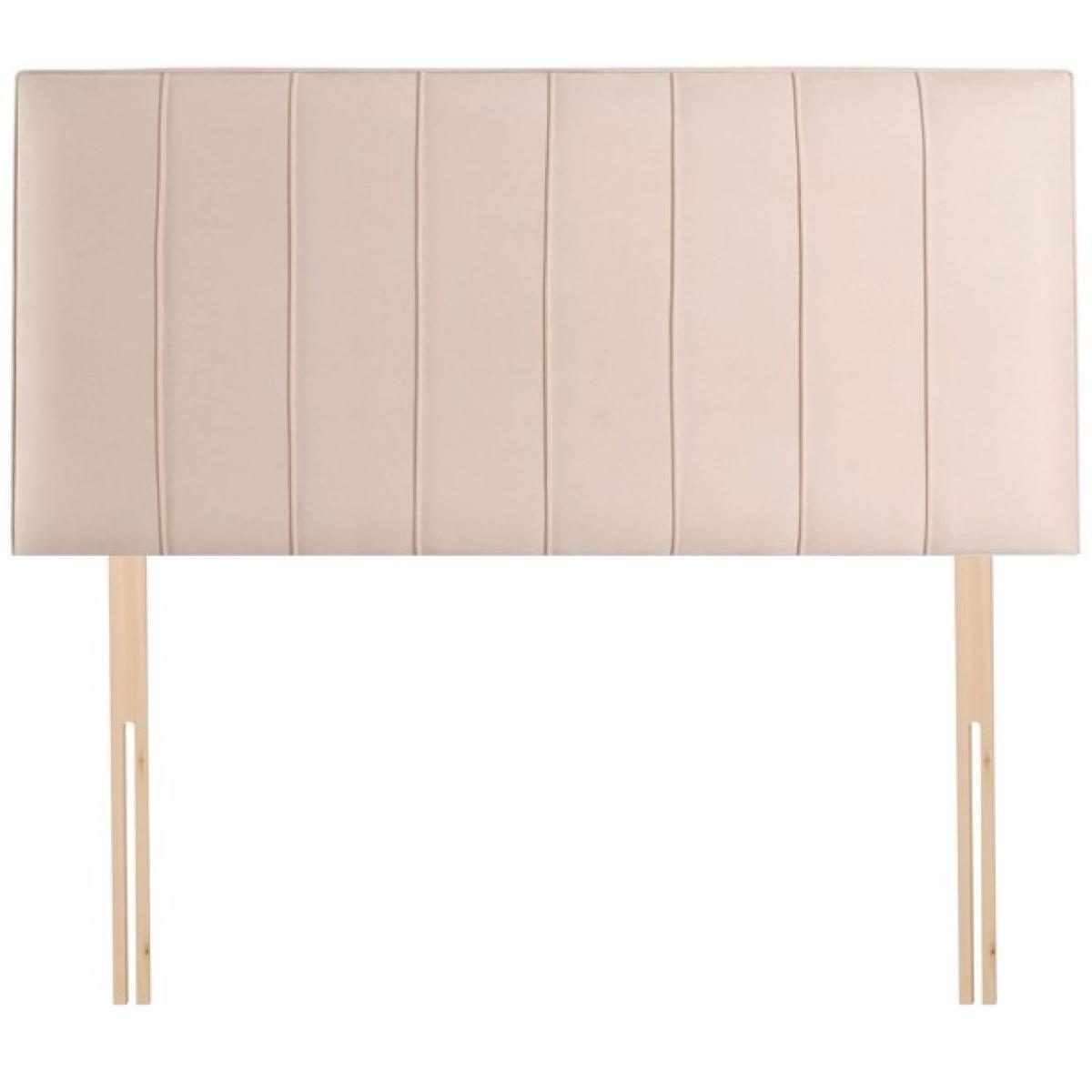A beautifully upholstered Hypnos Petra Strutted Headboard provides a bold silhouetted statement to frame your bed, creating a stunning focal point and finishing touch to both the bed and the bedroom. A deeply upholstered headboard with vertical hand piped detail. The headboard is upholstered in a range of modern colours and textures. Bed fixing on struts - The bed fixing on struts design uses the traditional headboard design with 2 wooden fixing posts attached to the back. Key Features: Approved by the National Bed Federation (NBF) ensuring it has been manufactured to the highest UK standards Choose bed fixing on struts design or slim fit floor standing design Vertical hand piped panels for a elegant style Available in a range of fabrics and colours Made from FSC certified timber Available in Small Single, Single, Small Double, Double, King and Superking. Dimensions: Small Single – W 75cm (2ft6) x H 77cm (30’’) x D 9cm (3.5’’) Single – W 90cm (3ft) x H 77cm (30’’) x D 9cm (3.5’’) Small Double – W 120cm (4ft) x H 77cm (30’’) x D 9cm (3.5’’) Double – W 135cm (4ft6) x H 77cm (30’’) x D 9cm (3.5’’) King Size – W 150cm (5ft) x H 77cm (30’’) x D 9cm (3.5’’) Super King Size – W 180cm (6ft) x H 77cm (30’’) x D 9cm (3.5’’) All screens vary in colour reproduction and whilst every effort has been made to display the colour as accurately as possible it is for guidance only.