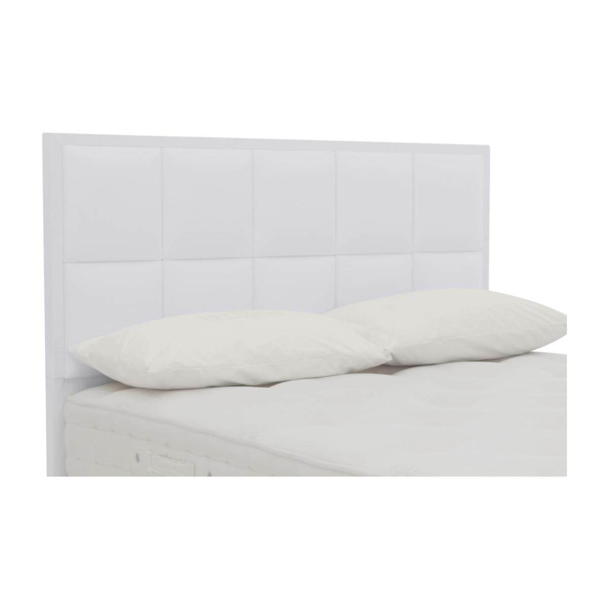 This stunning headboard is lavishly upholstered with two rows of cushioned panels. Handmade in the UK by Royal Warrant holders Hypnos. Why you'll love it Striking contemporary design makes this headboard a standout piece. Floor standing and fully upholstered from top to bottom. Cushioned panels are set within a border of matching fabric. Get in touch for a contrasting black border or standard height design. Fixes to the Hypnos Bespoke collection shallow divan bases with ease. Choose from a wide variety of fabrics and colours. Available in single, small double, double, king, and super king. Handcrafted in the UK. This headboard is part of the Hypnos range at Furniture Village. What you need to know Compatible with Hypnos shallow divan bases. Clean upholstery weekly using a soft brush or vacuum with an appropriate attachment. Professional cleaning is advised for all oil and grease-based stains.