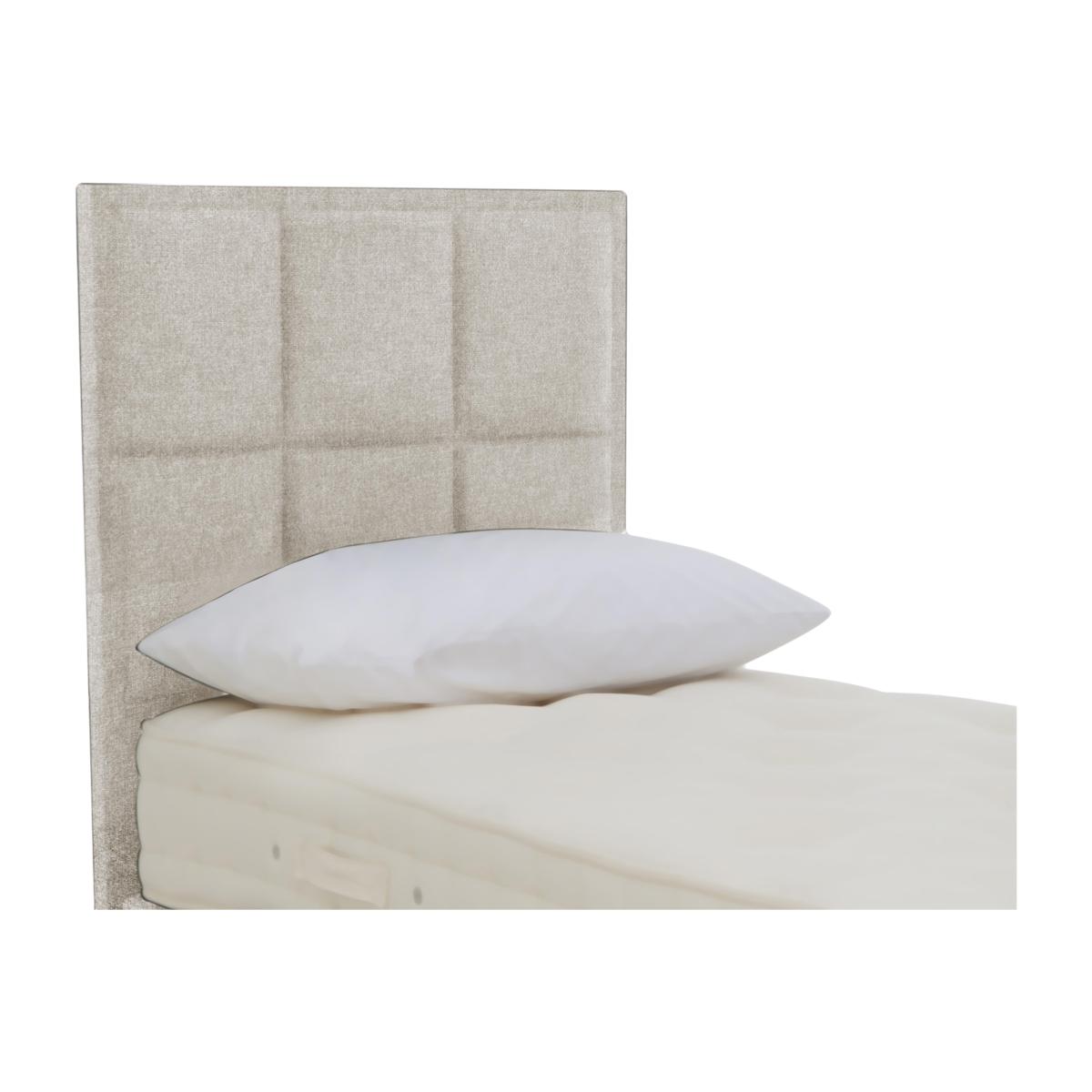 This stunning headboard is lavishly upholstered with two rows of cushioned panels. Handmade in the UK by Royal Warrant holders Hypnos. Why you'll love it Striking contemporary design makes this headboard a standout piece. Floor standing and fully upholstered from top to bottom. Cushioned panels are set within a border of matching fabric. Get in touch for a contrasting black border or standard height design. Fixes to the Hypnos Bespoke collection shallow divan bases with ease. Choose from a wide variety of fabrics and colours. Available in single, small double, double, king, and super king. Handcrafted in the UK. This headboard is part of the Hypnos range at Furniture Village. What you need to know Compatible with Hypnos shallow divan bases. Clean upholstery weekly using a soft brush or vacuum with an appropriate attachment. Professional cleaning is advised for all oil and grease-based stains.