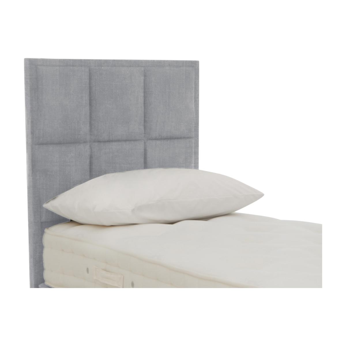 This stunning headboard is lavishly upholstered with two rows of cushioned panels. Handmade in the UK by Royal Warrant holders Hypnos. Why you'll love it Striking contemporary design makes this headboard a standout piece. Floor standing and fully upholstered from top to bottom. Cushioned panels are set within a border of matching fabric. Get in touch for a contrasting black border or standard height design. Fixes to the Hypnos Bespoke collection shallow divan bases with ease. Choose from a wide variety of fabrics and colours. Available in single, small double, double, king, and super king. Handcrafted in the UK. This headboard is part of the Hypnos range at Furniture Village. What you need to know Compatible with Hypnos shallow divan bases. Clean upholstery weekly using a soft brush or vacuum with an appropriate attachment. Professional cleaning is advised for all oil and grease-based stains.