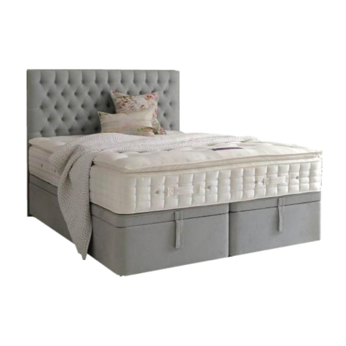 The Saunderton mattress from Hypnos artfully combines luxurious layers of responsibly sourced cotton and soft Solotex™, together with Adaptiv™ springs to sense and flex to your shape. Generous layers of soft cotton help keep sleepers cool at night. By responsibly sourcing its cotton, Hypnos are supporting continuing improvements for the environment cotton grows in and the farming communities who produce it. Contains a whole fleece, or 3kg, of pure wool (per 150cm mattress), that is 100% British and traceable to Red Tractor assured farms. This no-turn mattress features ReActivePro™ . 6-turn pocket spring system with Triple Edge Protection™ featuring higher tension edge springs, framed support and two rows of genuine hand side stitching for a hand-tailored finish. Woven from sustainably sourced, unbleached cotton, this breathable soft sleep surface, is naturally safe and fire resistant without the use of traditional FR chemicals. Available in a wide range of fabric options to meet everyone’s individual bedroom décor and style. The Hypnos SuperStorage™ . Ottoman allows you to use the entire divan base for storage, the ultimate storage solution - up to almost 3 square metres with the king size. Simply lift the top of the divan for easy access. Idealistic for smaller rooms as you do not need space for pull out drawers. Available in Single, Small Double, Double, King and Super King sizes. Headboard shown is the Hypnos Eleanor Headboard. Please note, this is not included in this price, to choose your headboard click here to visit our headboard range. This mattress is best partnered with a open coil firm edge base. Features Divan bases come with chrome castors as standard Super Storage Ottoman Divan Base Height - 41cm Mattress depth - 30cm Medium comfort Pocket sprung Two Row Hand side stitched for edge to edge support Triple Edge Protection Cotton Chemical free mattress covering Non-turn mattress 1200 ReActivePro™ 6-turn pocket spring system in 150cm Size 1500 Adaptiv™ Comfort Springs in 150cm Size Pillow Top adds luxury cushioning to supportive springs Hand tufted Chrome Vents to Aid Breathability 10 Year Guarantee All sizes are approximate. Colour is for guidance only because while we make every effort to display the colour as accurately as possible, all screens vary in colour reproduction.
