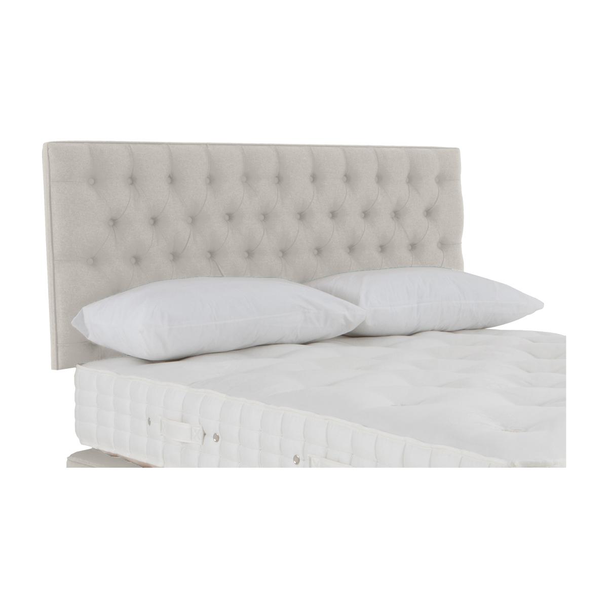 Tall and wide, this headboard blends exquisite traditional buttoning with a clean and contemporary finish. Why you'll love it This headboard features five rows of buttoning and sumptuous padding. Designed to fit into all styles of bedroom décor. Easily affixes to any standard size divan base. Works best with the Hypnos Bespoke collection of luxurious divans. Choose from a wide variety of fabrics and colours. Available in double, king, and super king. Handcrafted in the UK. This headboard is part of the Hypnos range at Furniture Village. What you need to know Compatible with any standard size divan base. Clean upholstery weekly using a soft brush or vacuum with an appropriate attachment. Professional cleaning is advised for all oil and grease-based stains.