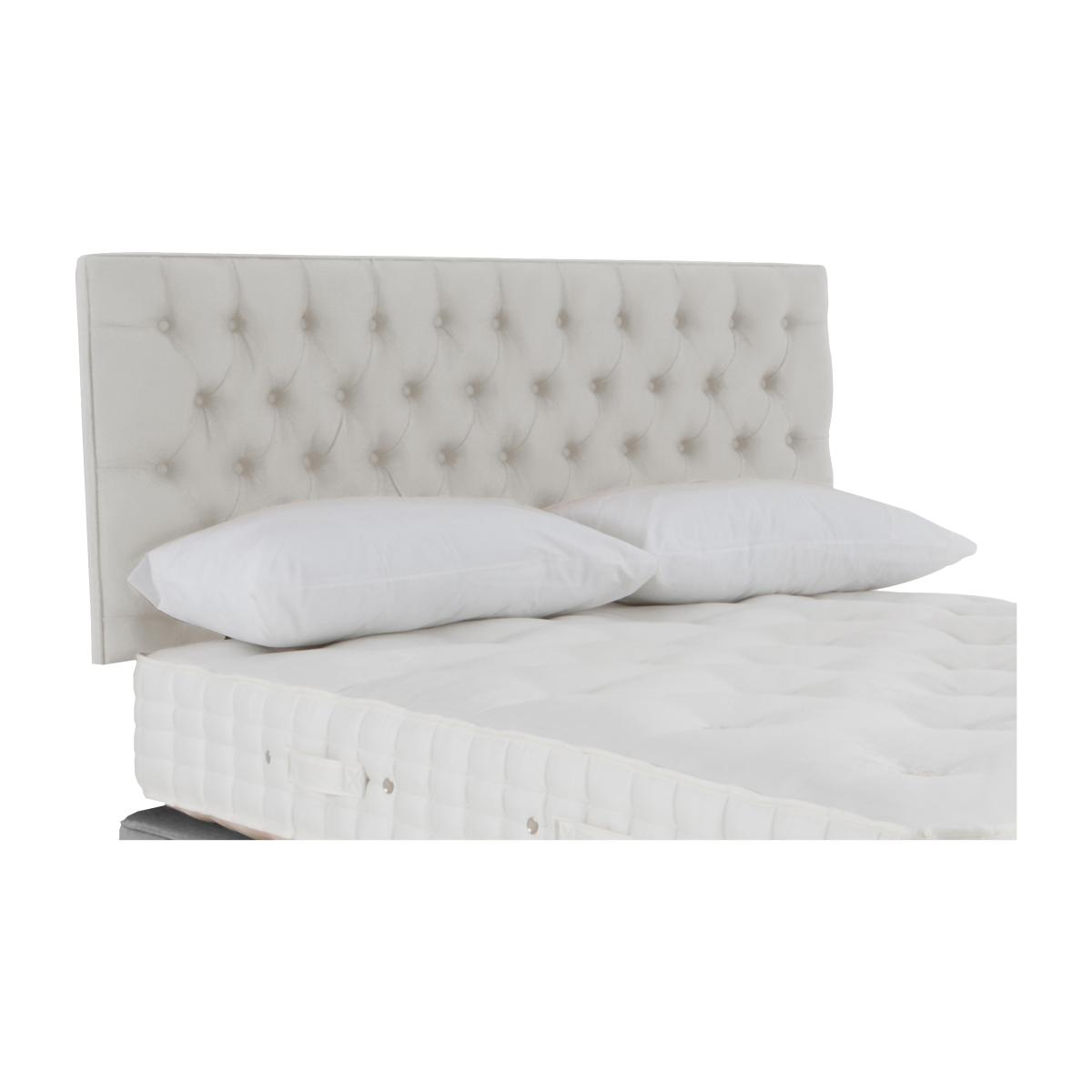 Tall and wide, this headboard blends exquisite traditional buttoning with a clean and contemporary finish. Why you'll love it This headboard features five rows of buttoning and sumptuous padding. Designed to fit into all styles of bedroom décor. Easily affixes to any standard size divan base. Works best with the Hypnos Bespoke collection of luxurious divans. Choose from a wide variety of fabrics and colours. Available in double, king, and super king. Handcrafted in the UK. This headboard is part of the Hypnos range at Furniture Village. What you need to know Compatible with any standard size divan base. Clean upholstery weekly using a soft brush or vacuum with an appropriate attachment. Professional cleaning is advised for all oil and grease-based stains.