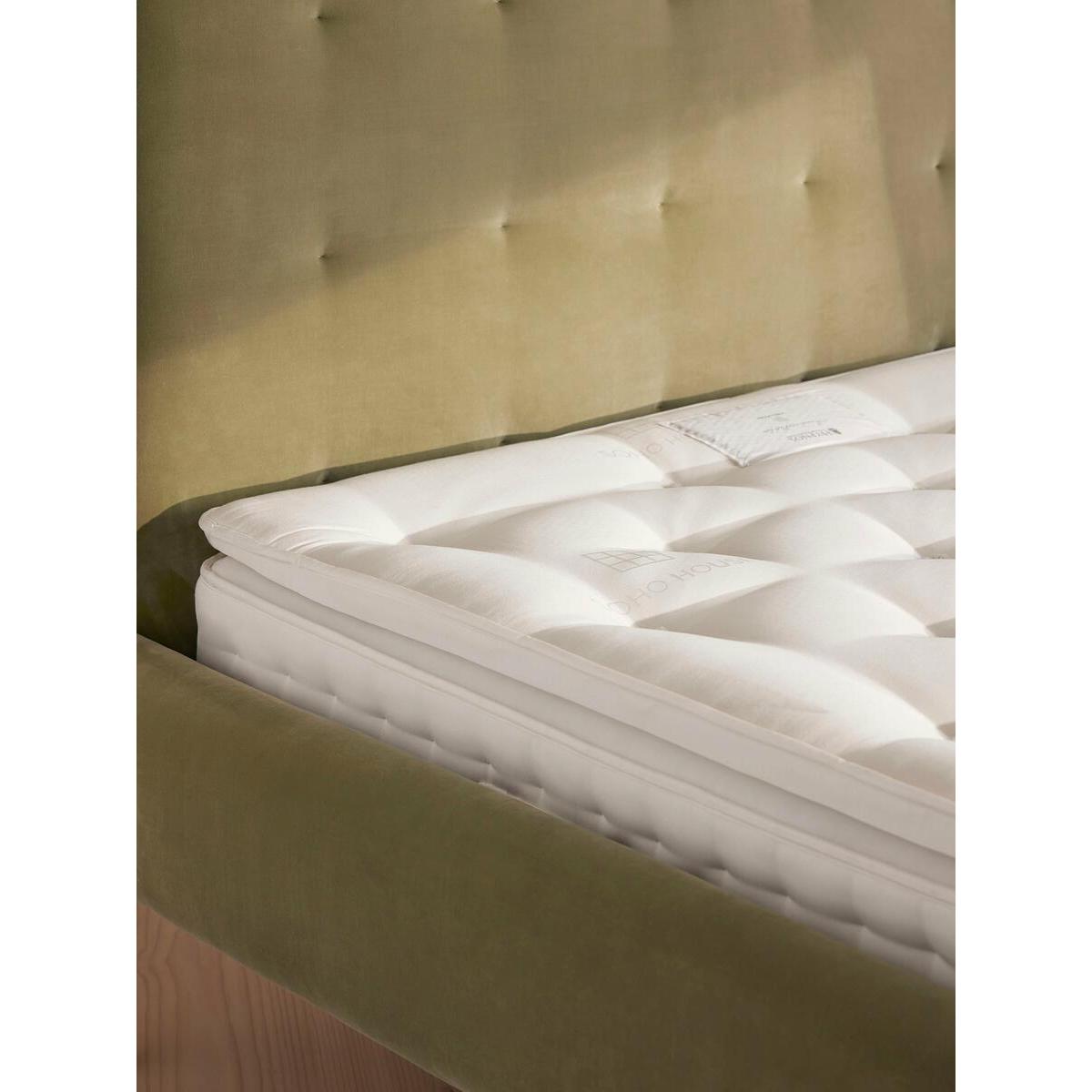 The Woolsleeper Pillow Top mattress has been created by Hypnos for an optimum sustainable sleep solution. The no turn design ensures supreme comfort with minimum fuss and every detail considered, including sustainably-sourced and fully recyclable materials. The 150cm Woolsleepers Pillow Top contains 660g wool which is fully traceable back to the individual farm, while an unbleached cotton and viscose surface provides a luxurious, breathable, and hygienic sleep. The ReActivePro™ pocket spring core is specially engineered to deliver ultimate comfort, time after time. GRS Dual density polyester is made from recycled plastic bottles, and our 150cm mattress contains over 230 recycled 500ml plastic bottles that otherwise would have gone to landfill. Each mattress is also constructed with a contract Triple Edge Protection™ to provide true edge-to-edge support. Horizontal handles ease mattress positioning on the bed base. Hypnos Woolsleeper King mattress and Comfort Layers Pillow Top Hypnos God of Sleep unbleached cotton and viscose ticking 100% British Wool pillow top traceable to farm Wool responds naturally to fluctuations in body temperature for perfect night's sleep Natural M-Pure FR treatment meets BS7177 Medium Hazard (Crib 5) fire safety standard GRS Dual density polyester made from recycled plastic bottles Comfort Layers Mattress 1000 ReActivePro™ pocket spring core Duo S FR pad made from recyclable mixed fibres