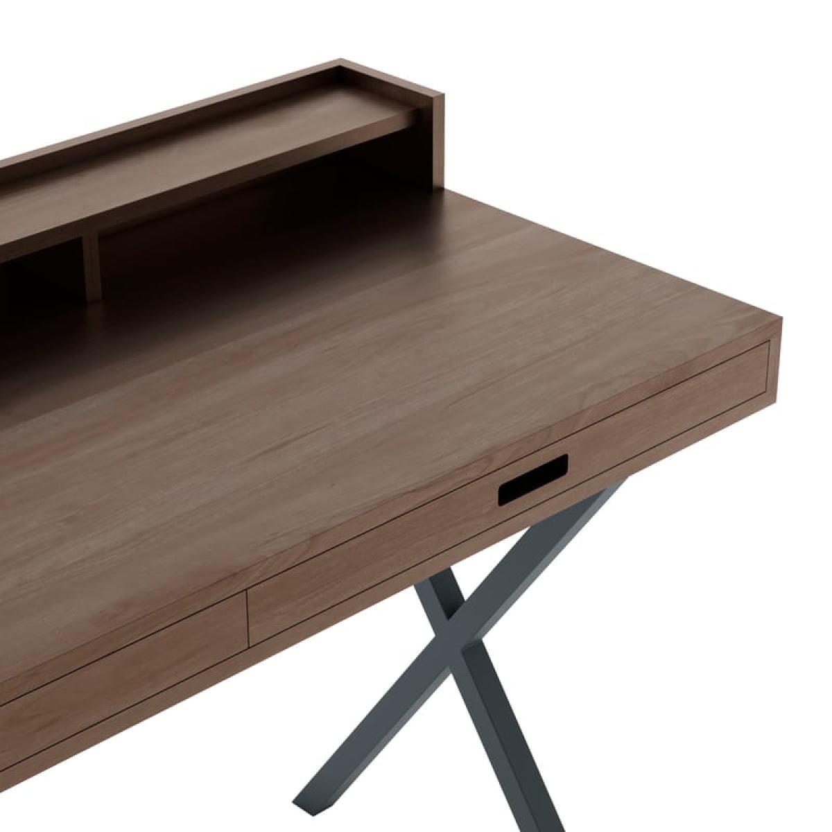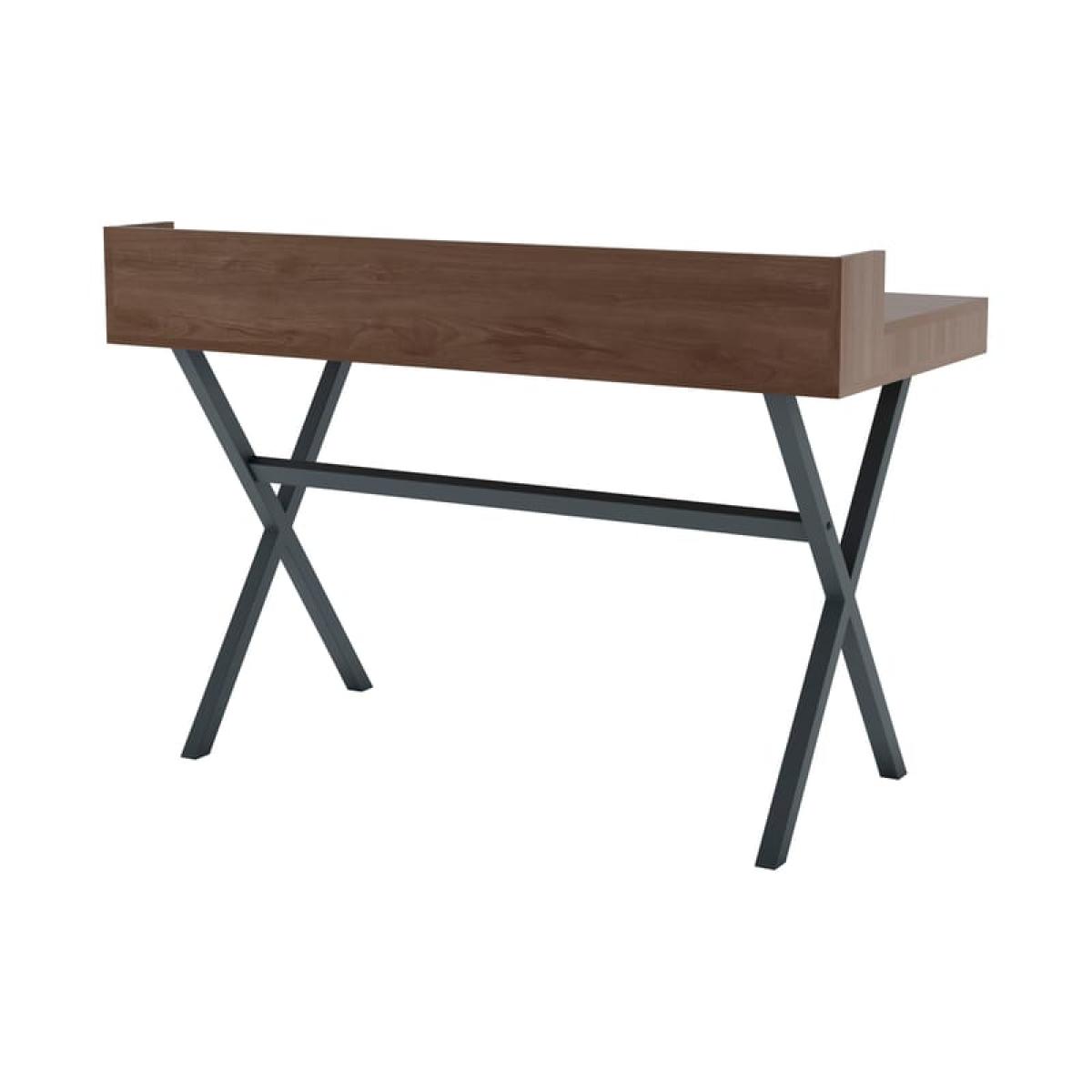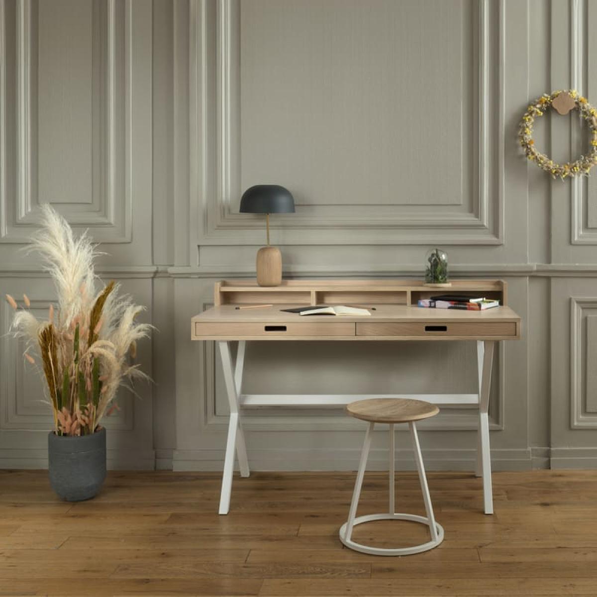The Hyppolite Desk: the elegance of contemporary designThe Hyppolite Desk from French brand Hartô embodies the elegance of contemporary design. Imagined by talented designer Florence Watine, this Writing desk brilliantly revisits retro aesthetics to blend harmoniously into modern interiors. Sleek, refined designWith its sober lines and slender silhouette, the Hyppolite Desk seduces with its sophisticated simplicity. The combination of Walnut veneer and Lacquered metal Legs offers a striking contrast, adding a touch of modernity to the ensemble. The meticulous finishes bear witness to the highest quality craftsmanship. Functionality and space optimizationDesigned to meet the needs of contemporary spaces, Hyppolite's compact dimensions (120 cm wide by 56 cm deep) make it ideal for small spaces or for creating a discreet desk area in a living room. It features three spacious drawers and three open niches, offering clever storage solutions for organizing documents, accessories and personal items. Versatility and adaptabilityThanks to its versatile design, this Desk blends easily into a variety of settings, whether minimalist, Scandinavian or bohemian chic. It can also be used as a console in an entrance hall, or as an elegant dressing table in a bedroom. Why choose the Hyppolite Desk? Timeless aesthetics: a pure design that stands the test of time. Quality materials: a harmonious combination of Walnut and Lacquered metal. Optimized functionality: multiple storage spaces for efficient organization. European manufacturing: production takes place in Portugal, guaranteeing traditional craftsmanship. Give your home an exceptional look with the Hyppolite Desk from Hartô. Its refined design and practicality make it an indispensable ally in your daily life, combining aesthetics and functionality. In detail: Variation : Walnut / Slate grey Brand : Hartô Designer : Florence Watine Type : Desk, Writing desk Colour : Walnut / Legs : Matt grey Slate grey Material : Natural walnut veneered MDF body, colorless acrylic matt varnish - Legs: epoxy lacquered metal. Dimensions :W 120 x D 56 cm x H 83 cm - Tray : D 41 x H 73 cm - Nest : W 38 x D 15 x H 10 cm - Drawer : W 58 x H 8 cm Weight : 70.4 lb Characteristics : Made in Portugal - Writing desk / Desk - 2 large drawers, 3 Nests - Delivered unassembled (Legs to assemble: supplied with screws and instructions) Show less