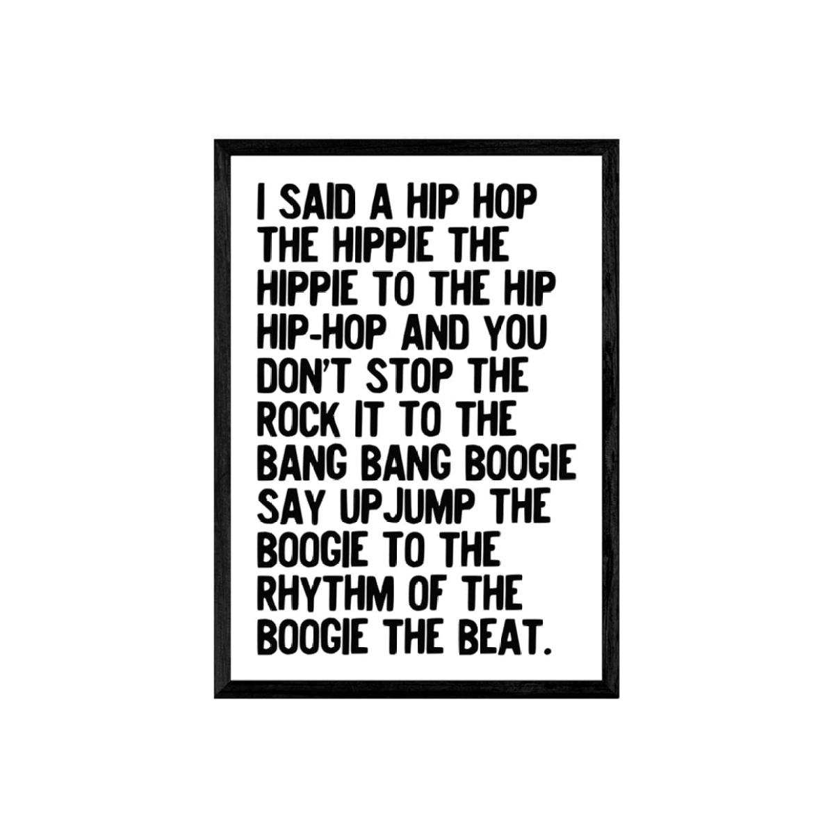 I Said A Hip Hop, Typographic Print Colour: Black, Size: A1
