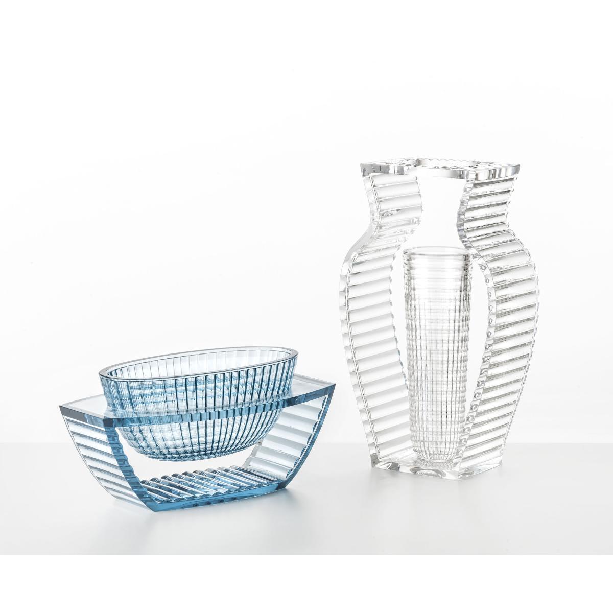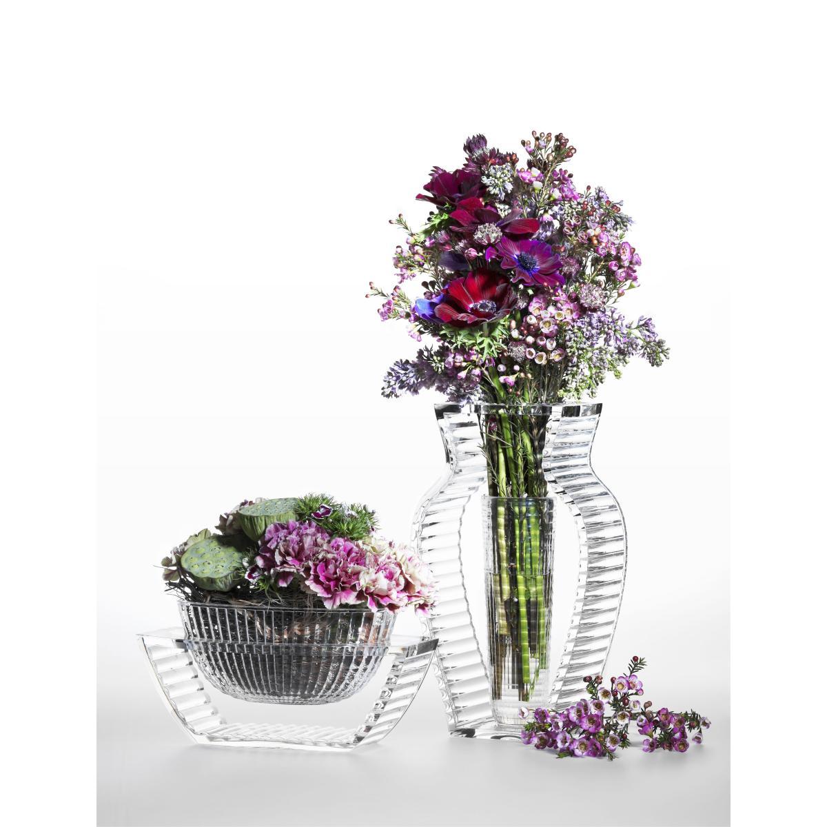 The I Shine is an extremely elegant vase, swing perfectly between tradition and modernity! Ultra-graphic and smooth, it still impresses with its ambivalence since it consists of a true oblong vase, placed inside an imaginative shaped ancient vase. Made with highly technical plastic materials, vase signed Eugéni Quittlet detonates and impresses with its unique appearance, which produces the illusion of an object in real crystal. Available in several colors but still transparent, I Shine bring a lot to your interior and put your bouquets in value with its design firmly in hand, both contemporary, poetic and slightly surreal.