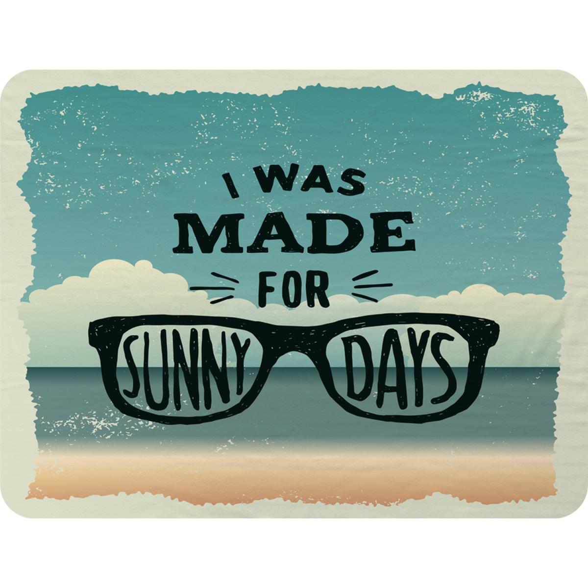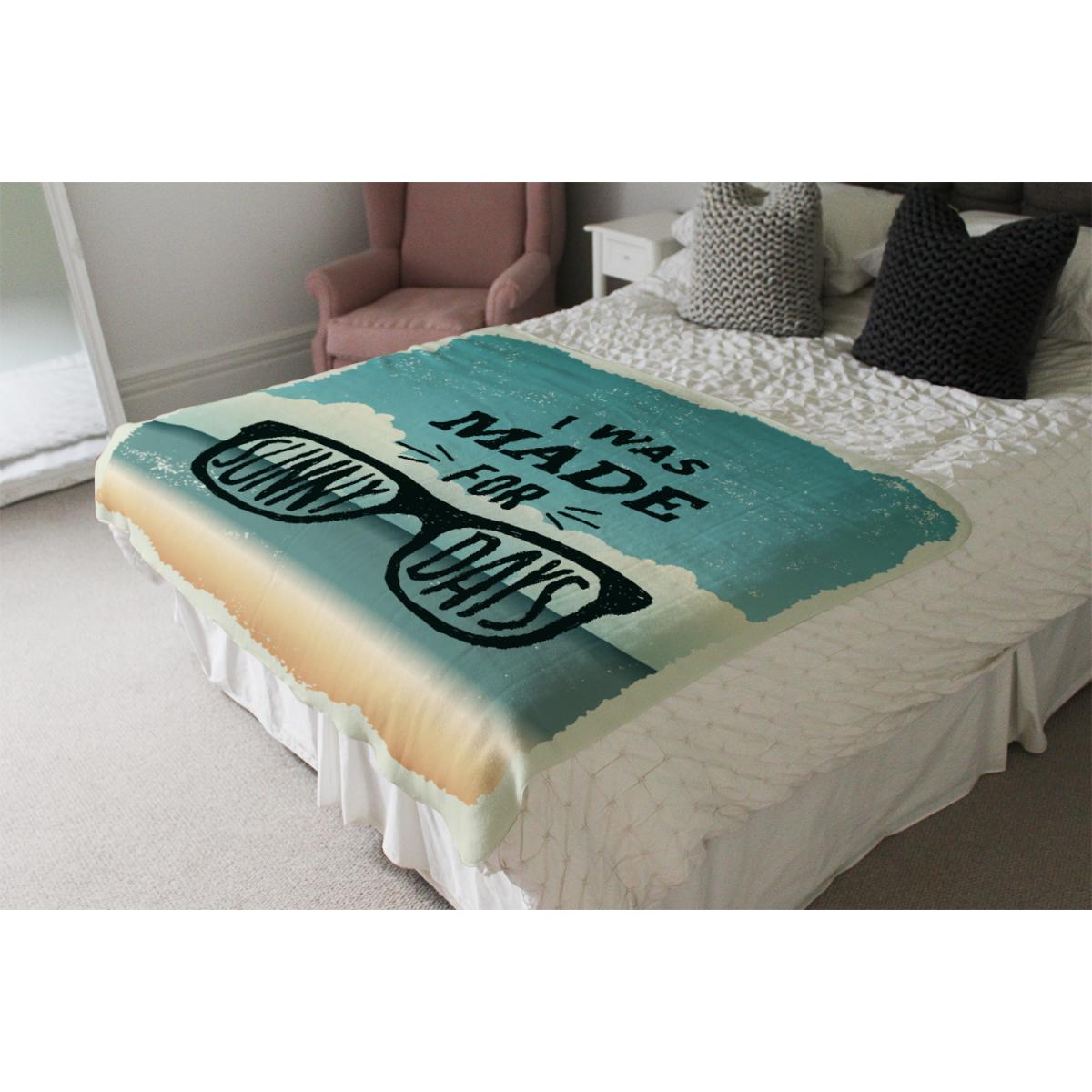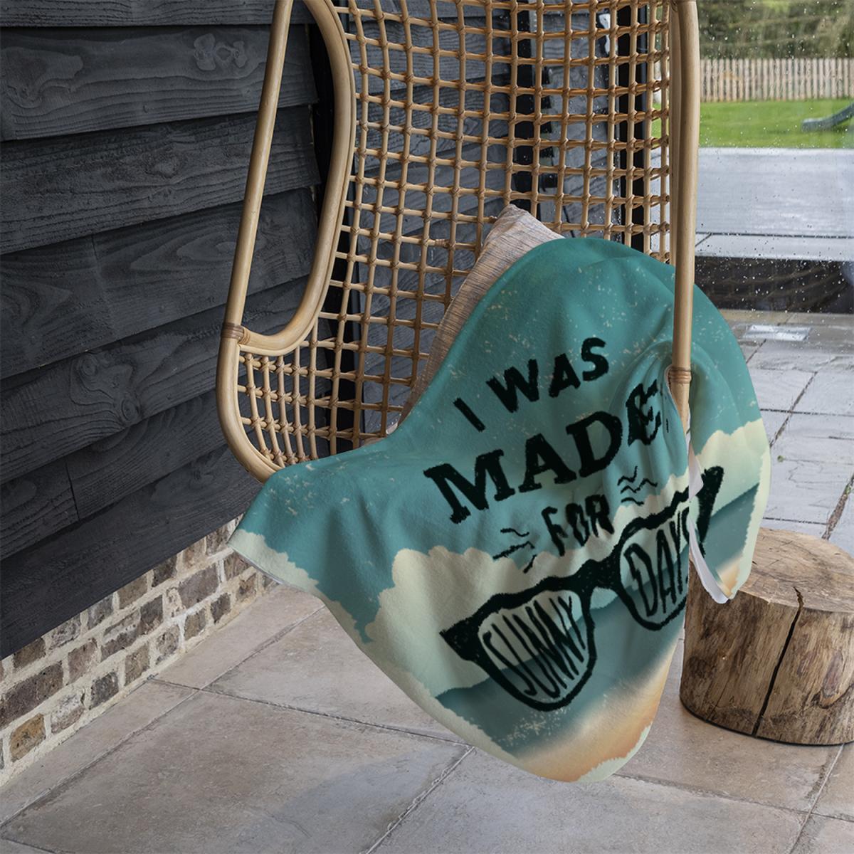 The I Was Made For Sunny Days blanket adds a cheerful, relaxed vibe wherever it’s styled. I love how its vibrant blue hue works well in both coastal and modern interiors, bringing a pop of colour without overpowering other design elements. It’s great styled casually draped over a sofa or layered on a bed for an easy, inviting look. For practical tips, try pairing it with neutral throws and cushions to create a balanced colour palette, or use it as a statement piece in a sunroom or outdoor patio to enhance a laid-back atmosphere. Its playful design also makes it an ideal choice for casual family spaces or holiday homes where comfort and personality are key.