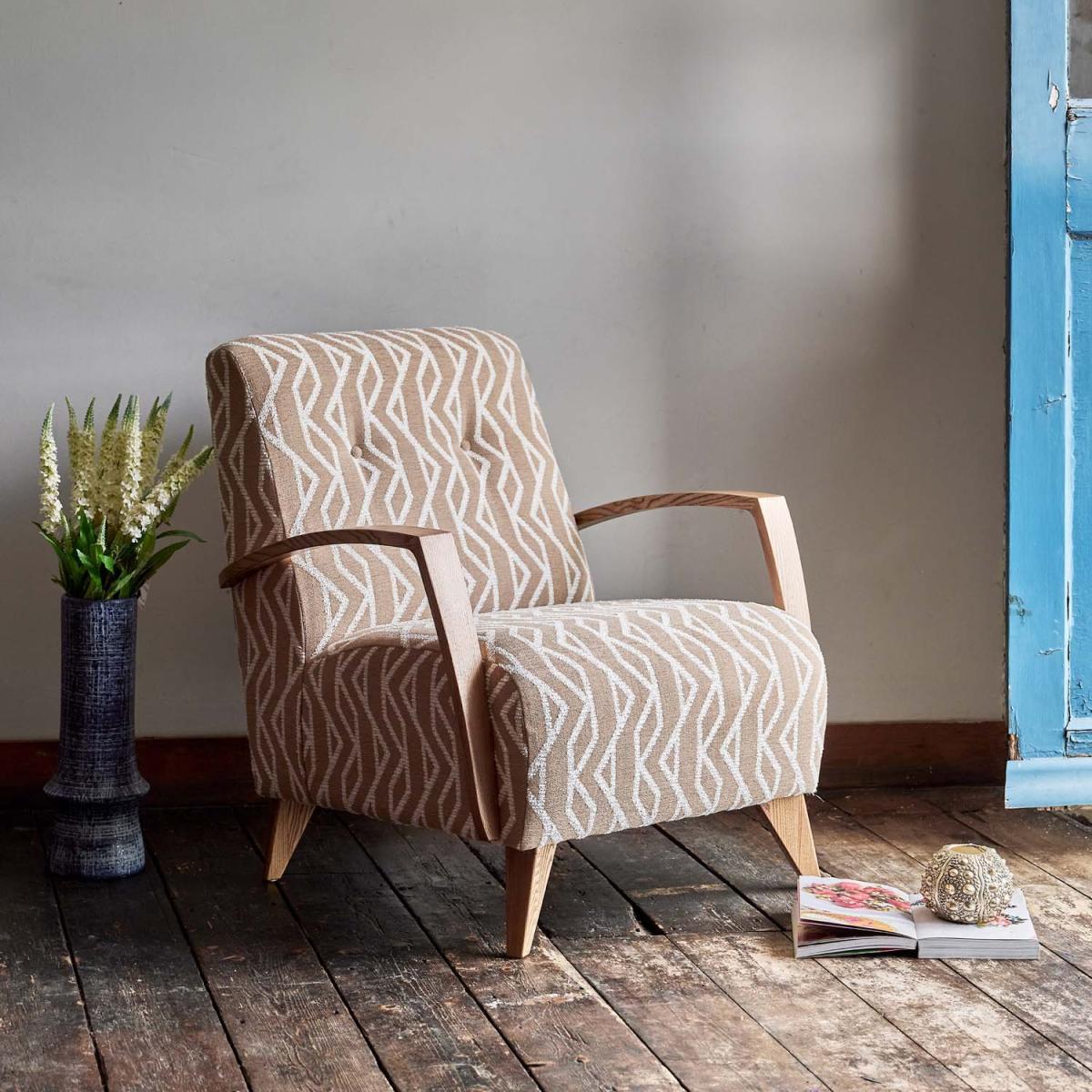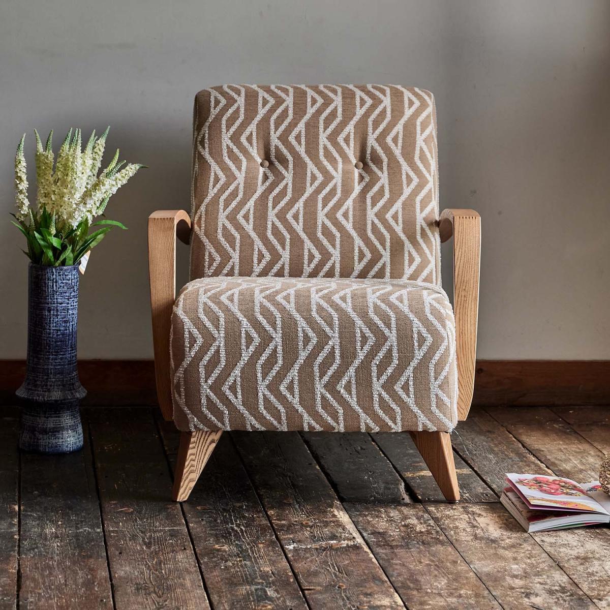 The Ibberton Chair is a luxurious accent to any living room or bedroom. Its patterned chenille upholstery combines with wooden arms and legs to create a stunning modern take on classic Scandinavian style, which is an ever-popular choice in interior design. The subtle neutral tones of the butterscotch fabric perfectly complement the cosy aesthetic created by the weathered ash accents, producing a stylish yet supremely comfortable accent chair.
