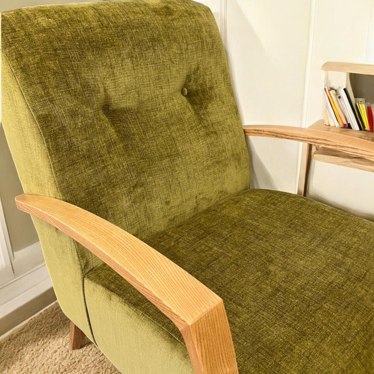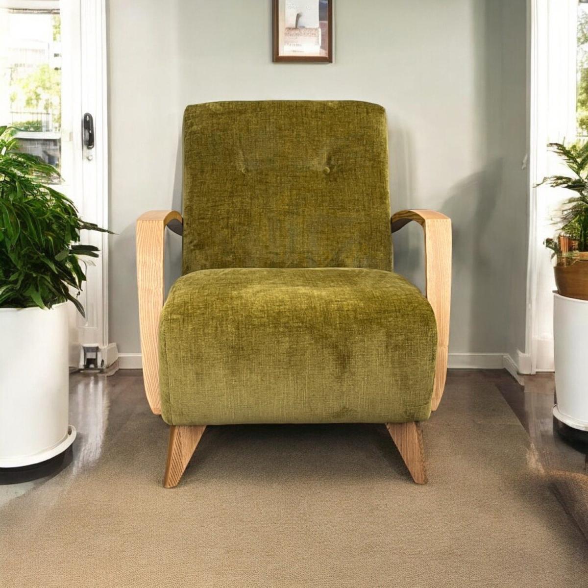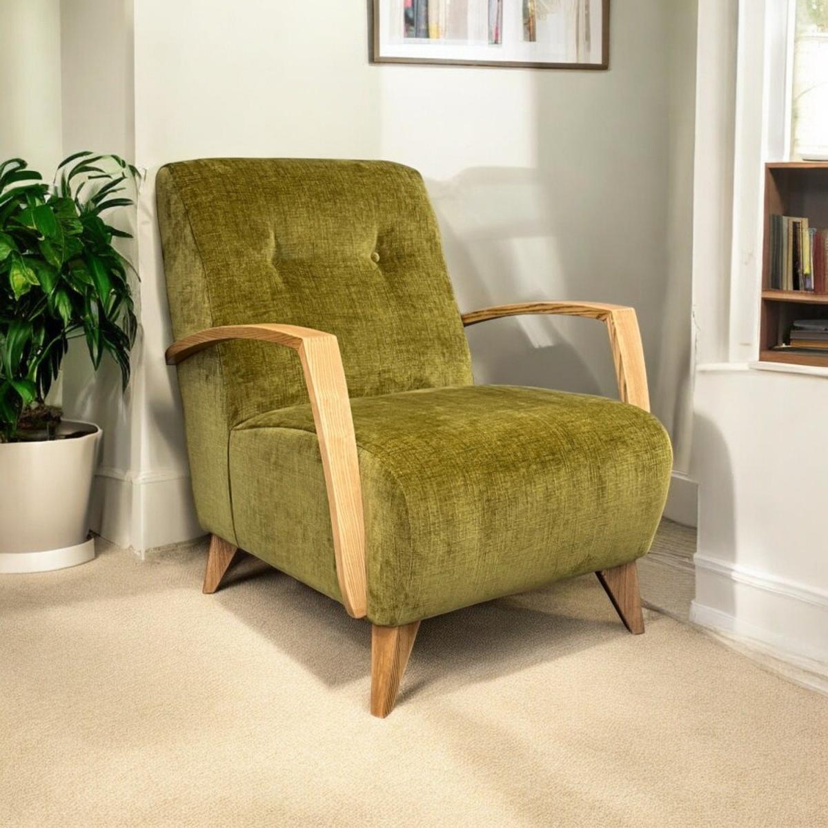 The Ibberton Chair is a sumptuous addition to any room in the home where a comfortable perch is a must. This chair in a pesto chenille marries with wooden detailing to create a modern take on classic Scandinavian style, which is an on trend choice in interior design. The subtle tone of the fabric perfectly complements the cosy aesthetic created by the weathered ash accents, producing a stylish yet supremely comfortable accent chair.