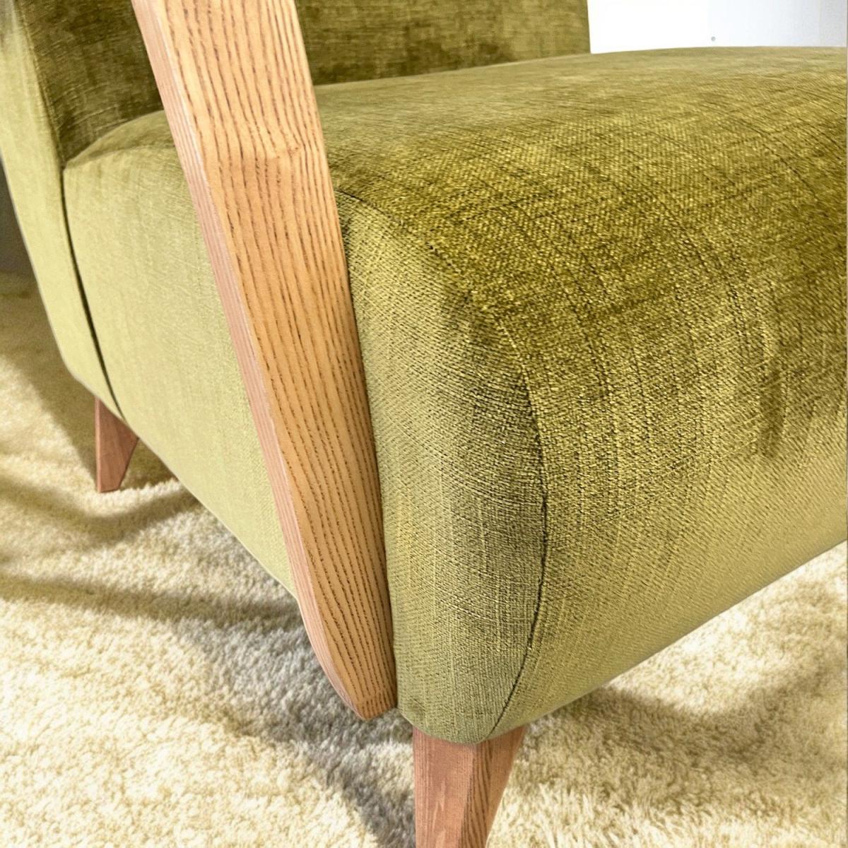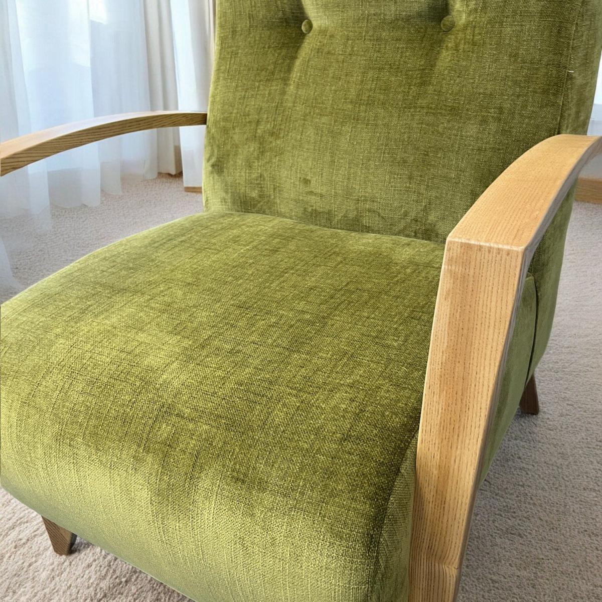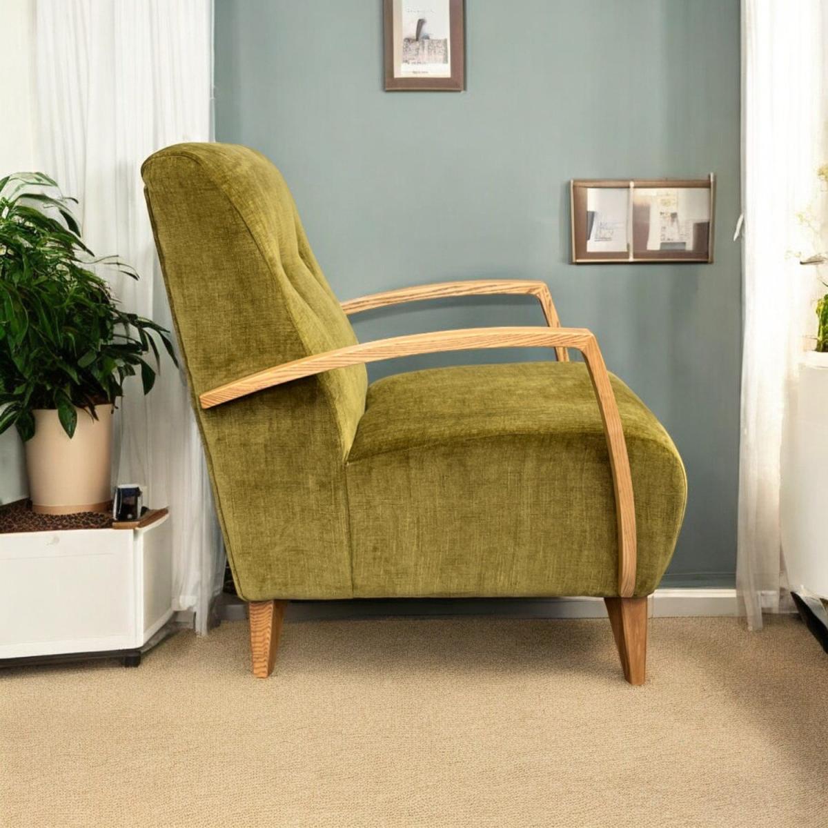 The Ibberton Chair is a sumptuous addition to any room in the home where a comfortable perch is a must. This chair in a pesto chenille marries with wooden detailing to create a modern take on classic Scandinavian style, which is an on trend choice in interior design. The subtle tone of the fabric perfectly complements the cosy aesthetic created by the weathered ash accents, producing a stylish yet supremely comfortable accent chair.