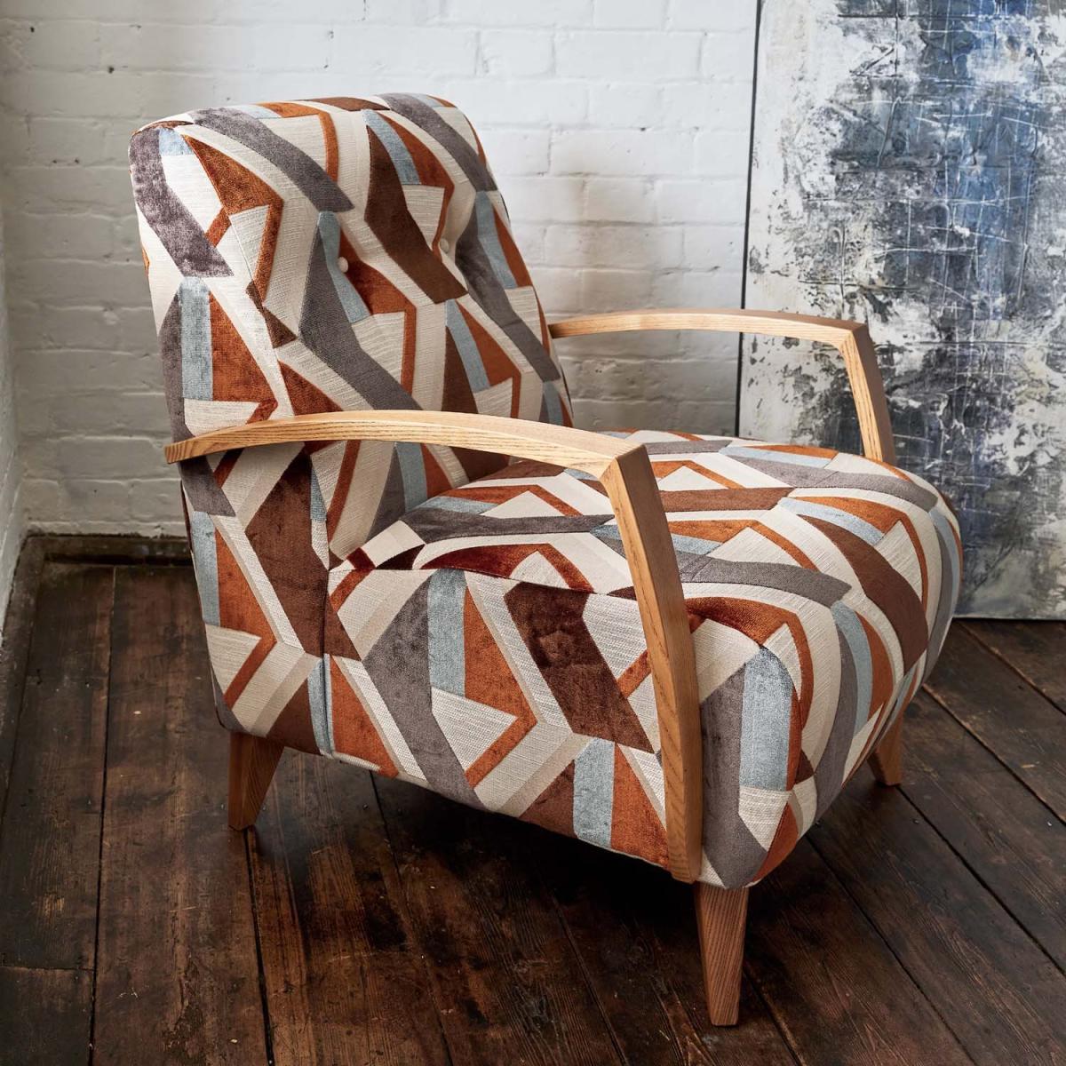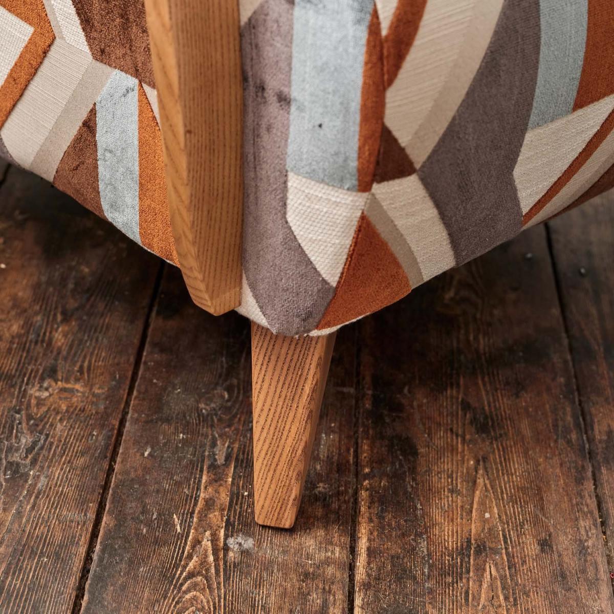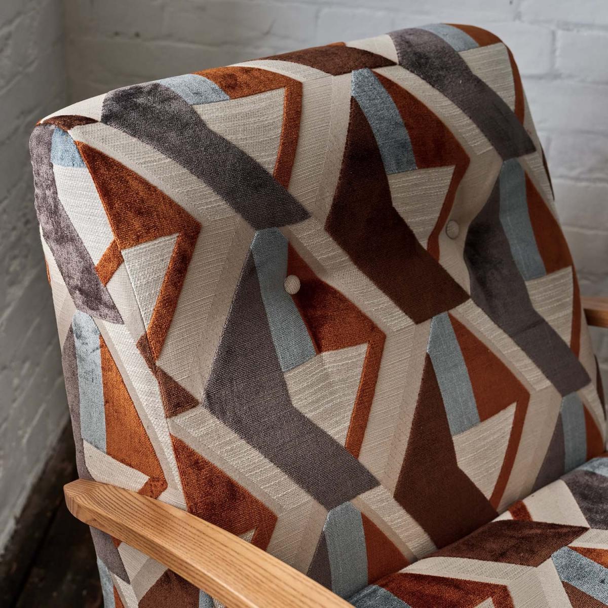 The Ibberton Chair is a luxurious accent to any living room or bedroom. Its patterned velvet upholstery combines with wooden arms and legs to create a stunning modern take on classic Scandinavian style, which is an ever-popular choice in interior design. The bold and vibrant tones of the multicoloured fabric perfectly complement and contrast the cosy aesthetic created by the weathered ash accents, producing a stylish yet supremely comfortable accent chair.
