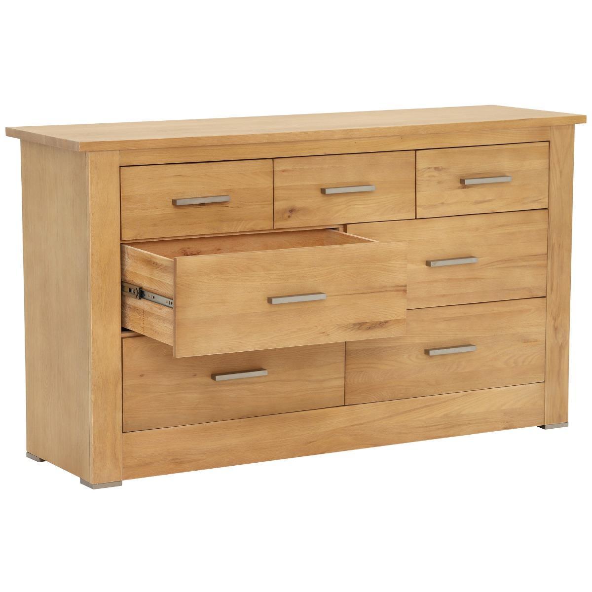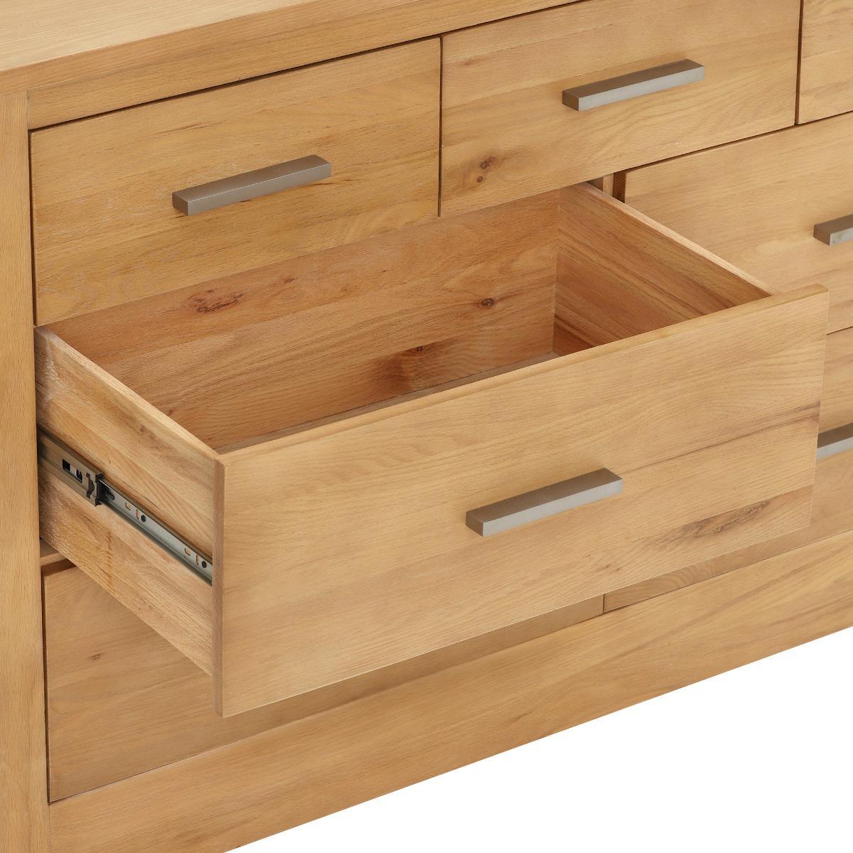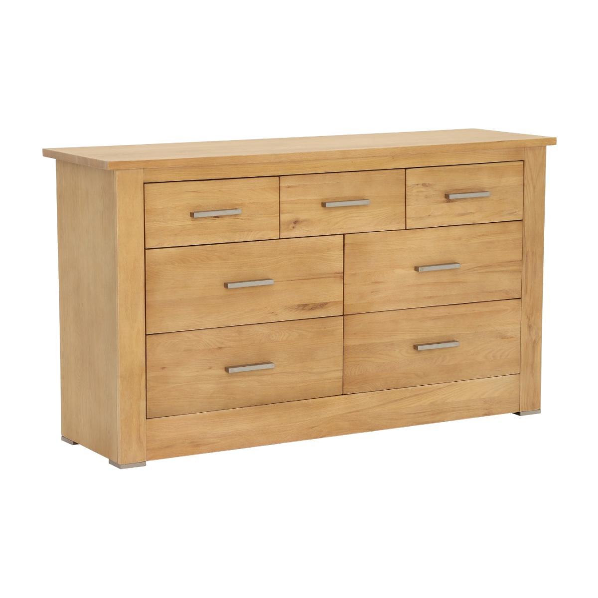Showcasing understated elegance, the Ibex 3+4 Chest features seven drawers, operating on smooth metal runners with a contrasting metal handle. The clear design of this piece allows the beautiful detail of the wood to stand-out, bringing a classic and organic feel. Beautifully crafted from solid oak, its light veneer will brighten up any room, and would look fabulous when paired with other furniture from the Ibex range.