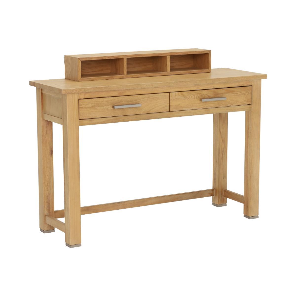 The stunning Ibex dressing table is the perfect place to get ready in the morning. With plenty of storage options, this nifty piece will easily contain cosmetics, whether in the drawers or on display in the three feature boxes. The raised shelf is ideal to display the matching Ibex Mirror, or one of our other gorgeous mirrors available. Simply add a chair or pouf for a complete look.