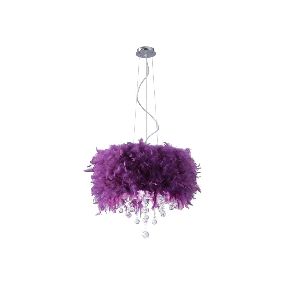 Ibis Ceiling Pendant with Purple Feather Shade Polished Chrome, Crystal - Polished Chrome