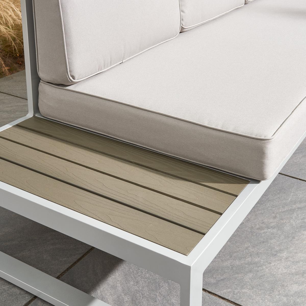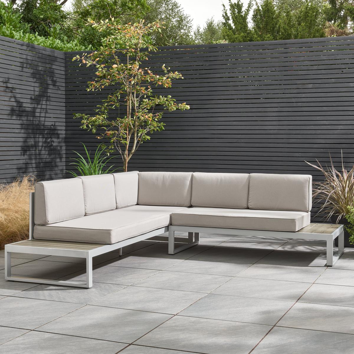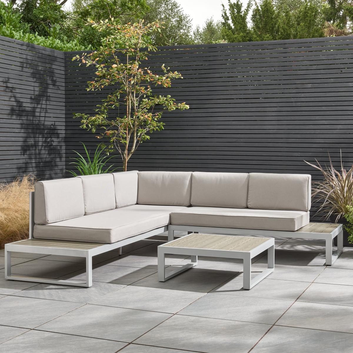Featuring the Ibiza Corner Sofa Set, with a 2-seater, 3-seater sofa and 1 table. This corner sofa set would make a striking addition in any garden and is perfect for relaxing in summer. Crafted from polywood for lower maintenance, the table and chairs are made from light weight and durable aluminium. This stylish set comes complete with generously filled seat cushions for ultimate comfort and back support.