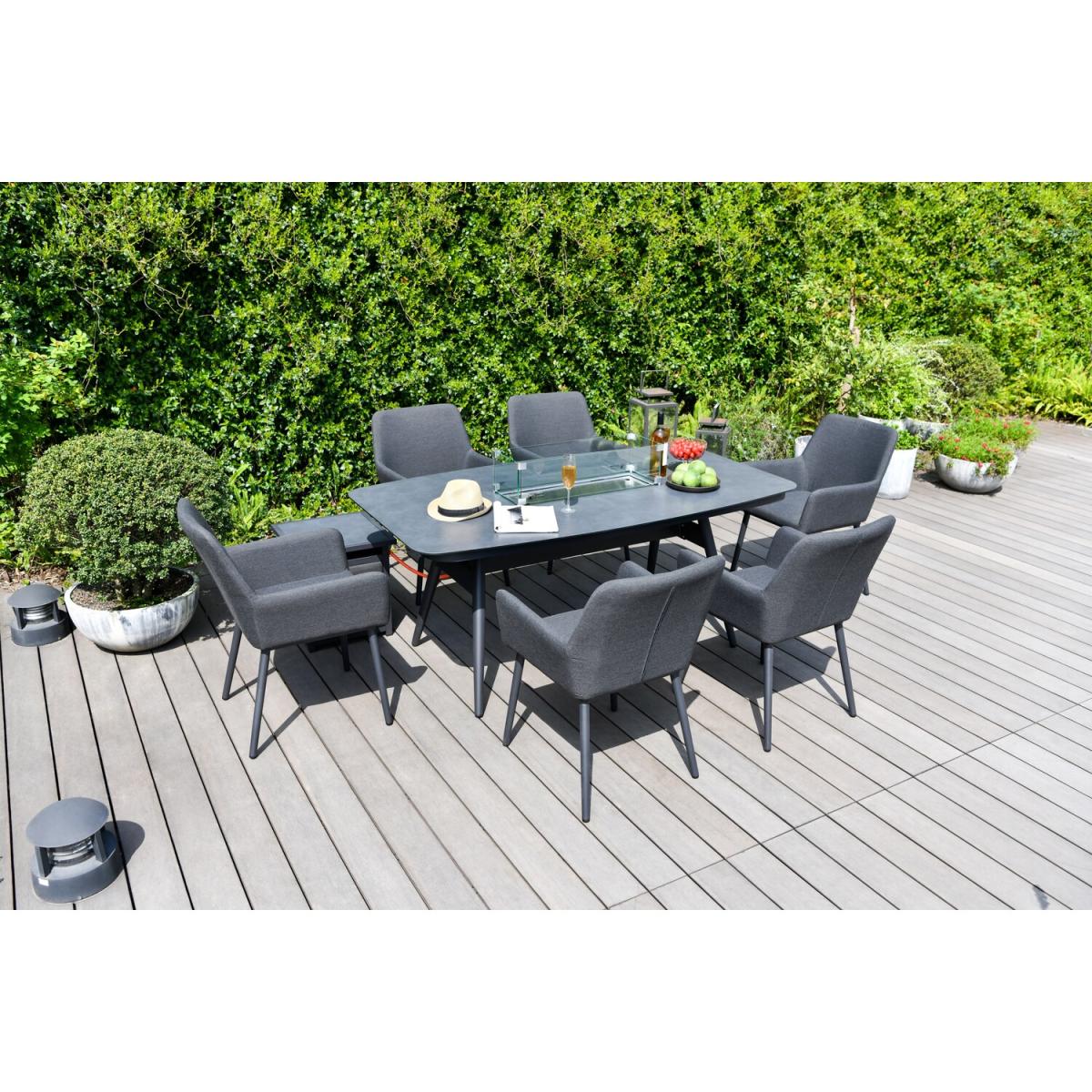 This Ibiza 7 Piece Dining Set is a stunning furniture set for your garden. This beautiful patio set can seat up to six people, making it perfect for parties and family gatherings. With its contemporary grey finish, it will add a stylish and sophisticated look to your patio that will complement your garden's greenery. The extra wide chairs provide additional comfort, ideal for relaxing outside on cosy evenings or sunny afternoons. The integrated fire pit is perfect for garden parties, BBQs or warm cosy evenings, making this dining set a versatile must-have for your outdoor space.