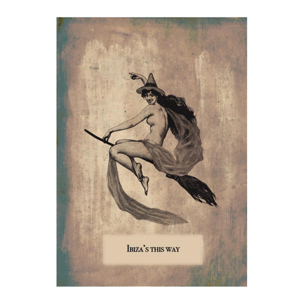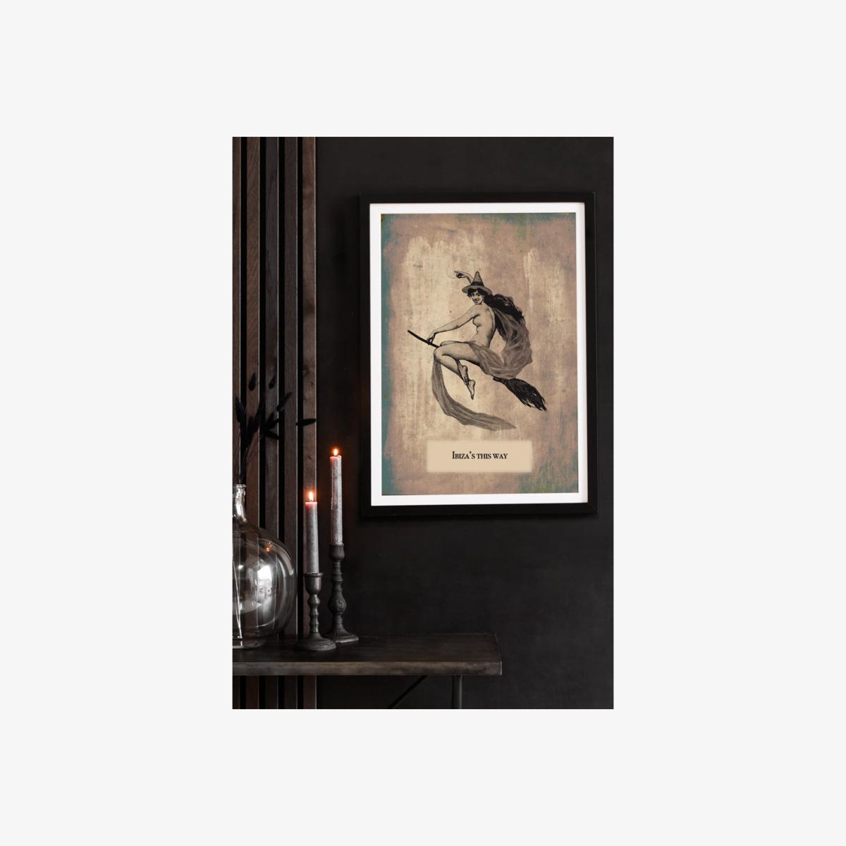 About The Ibiza This Way Print - Available Framed Or Unframed Joining the Rockett St George exclusive prints, the Ibiza This Way Print is heading in the right direction! Available framed or unframed this unique print showcases an alluring etched design featuring a fabulous ‘nudy’ witch on a broomstick. Incredibly quirky with a touch of gothic humour this monochrome art print will not fail to put a smile on your face! This print measures 59cm in height and 42cm in width unframed. Framed, this art print measures 66.8cm in height and 49.4cm in width. Why We Think You’ll Love The Quirky Art Print We have found that our traditional art prints with a typographic twist are favoured by so many so, we thought it’s only fitting to create a new collection to give your home a new and improved comical update! With cocktails constantly on our minds, this nude witch has instantly become our best friend. So whenever in doubt, follow her to find out where the party’s at! How To Style The Custom Art Print Designed to set your interior scheme apart from the rest, this striking art print will take pride of place just about anywhere you want to get the party started! To create a fabulous feature wall like no other, display this unframed or framed wall art with an eclectic mix of ornaments and personal memories that represent your fabulous character!