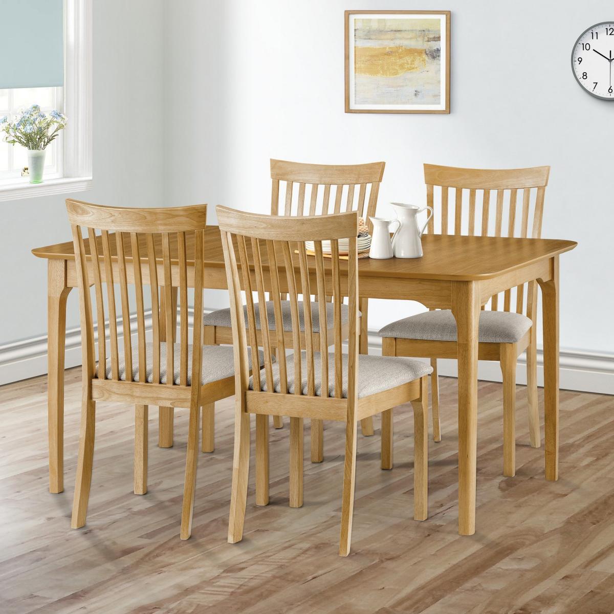 * 2 x Dining Chairs* Foam filled seat* Hardwood Frame The Ibsen Dining Chair is a beautifully crafted piece that offers a contemporary take on the classic shaker style. Made from light oak finished hardwoods, these chairs feature a subtle fabric padded seat for added comfort. The elegant design and high-quality materials make the Ibsen chairs a sophisticated and comfortable addition to any dining room, blending seamlessly with various décor styles.
