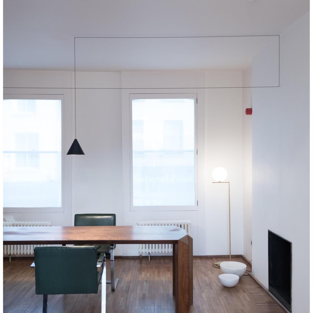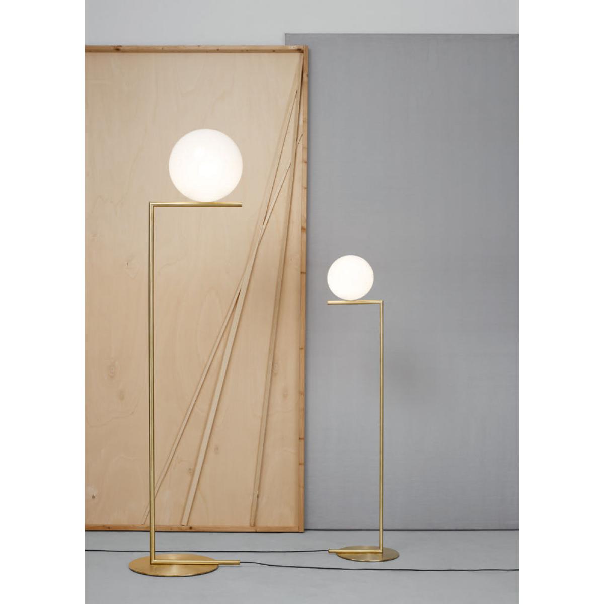"A contemporary modern lamp with a minimalist style by Michael Anastassiades's. The ""IC Lights"" consists of a range of elegant forms, an opaque globe delicately balanced with a metal stem at near impossible angles. The IC Light was inspired by the mesmerizing movement of a juggler as he effortlessly appears to make a ball move at will and balance at unexpected angles. In addition, the letters IC refer to the identity code used to assess immigrants entering the UK. This element of balance also applies to the lives of these people as they juggle to adjust to a new society and its demands. IC by Flos are jewel-like table lights that embody Anastassiades' angular aesthetic. These lamps have a refined and understated elegance. A brilliant fusion of light and balance, Flos lighting's Lights set out to challenge the equilibrium of illumination. IC Lights playfully balance light and simplicity. The appearance appears unstable, as if the opalescent ball may fall from its mouring at any time - but that's exactly what the London-based Cypriot designer was setting out to achieve. The lights reflect Anastassiades's love of industrial simplicity. He likens the design to a juggling act in which both sphere and baton are skillfully balanced. ".