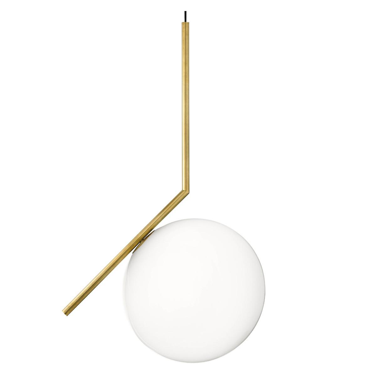 Beautifully designed by Michael Anastassiades in 2014 for Flos, the IC S2 Pendant Light explores balance in its most simplified form. Expertly crafted with a steel frame available in brushed brass, chrome and black finishes, the contemporary design is finished with a statement blown-glass opal diffuser, perfectly balanced on the edge of the slender stem. Casting a subtle glow throughout any space, the ethereal orb provides the perfect finishing touch to this dimmable light. Inspired by footage of a juggler spinning a set of spheres in the air, Anastassiades was mesmerised by the seeming weightlessness yet still in-motion spinning forms. He set out to represent this effortless balance through the IC Lighting Collection. A starkly contemporary form, the IC S2 Pendant Light will make a unique addition to your space. Requires: 1 x 205W E27 HSGS Halogen bulb (not included). Care instructions: Use only a soft cloth to clean the light, dampen with water and soap or a mild cleanser if needed. Do not use alcohol or other solvents.