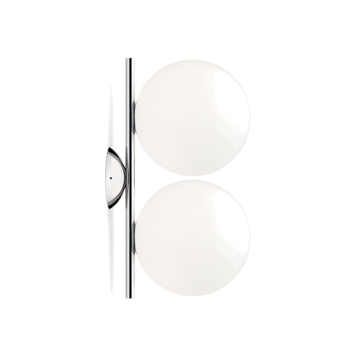 Designed by Michael Anastassiades in 2014 for Flos, the IC W1 Double Wall & Ceiling Light explores balance in its most simplified form, now offering double the illumination. Meticulously fashioned from brass and steel across matt black, brushed brass, chrome and glossy red burgundy finishes, the faultlessly contemporary design is finished withstatement blown-glass opal diffusers. Casting a subtle glow, the ethereal orbs provide the perfect finishing touch to this dimmable light. The design is informed by footage of a juggler spinning a set of spheres in the air. Anastassiades was mesmerised by the seeming weightlessness yet still in-motion spinning forms and set out to represent this effortless balance through his coveted IC Lighting collection. Requires: 2x E27 max. 60W bulbs (not included). Care instructions: Use only a soft cloth to clean the light, dampen with water and soap or a mild cleanser if needed. Do not use alcohol or other solvents.