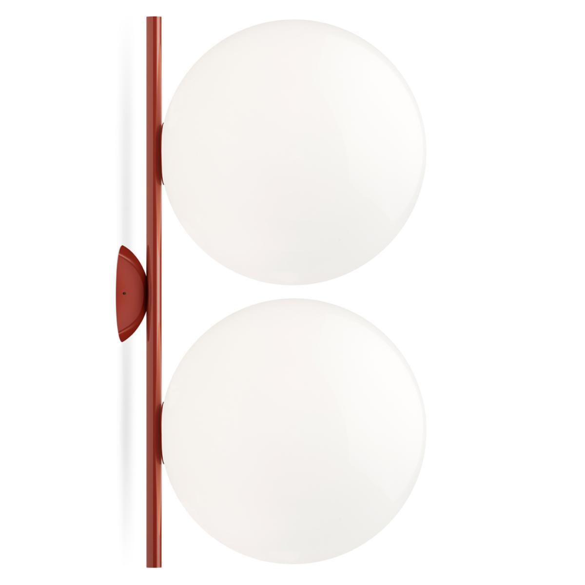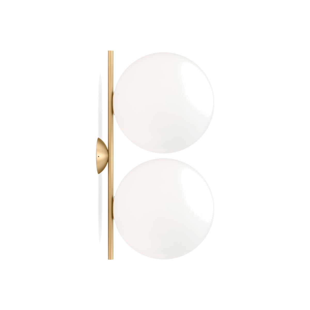 Designed by Michael Anastassiades in 2014 for Flos, the IC W2 Double Wall & Ceiling Light explores balance in its most simplified form, now offering double the illumination. Meticulously fashioned from brass and steel across matt black, brushed brass, chrome and glossy red burgundy finishes, the faultlessly contemporary design is finished withstatement blown-glass opal diffusers. Casting a subtle glow, the ethereal orbs provide the perfect finishing touch to this dimmable light. The design is informed by footage of a juggler spinning a set of spheres in the air. Anastassiades was mesmerised by the seeming weightlessness yet still in-motion spinning forms and set out to represent this effortless balance through his coveted IC Lighting collection. Requires: 2x E27 max. 205W bulbs (not included). Care instructions: Use only a soft cloth to clean the light, dampen with water and soap or a mild cleanser if needed. Do not use alcohol or other solvents.
