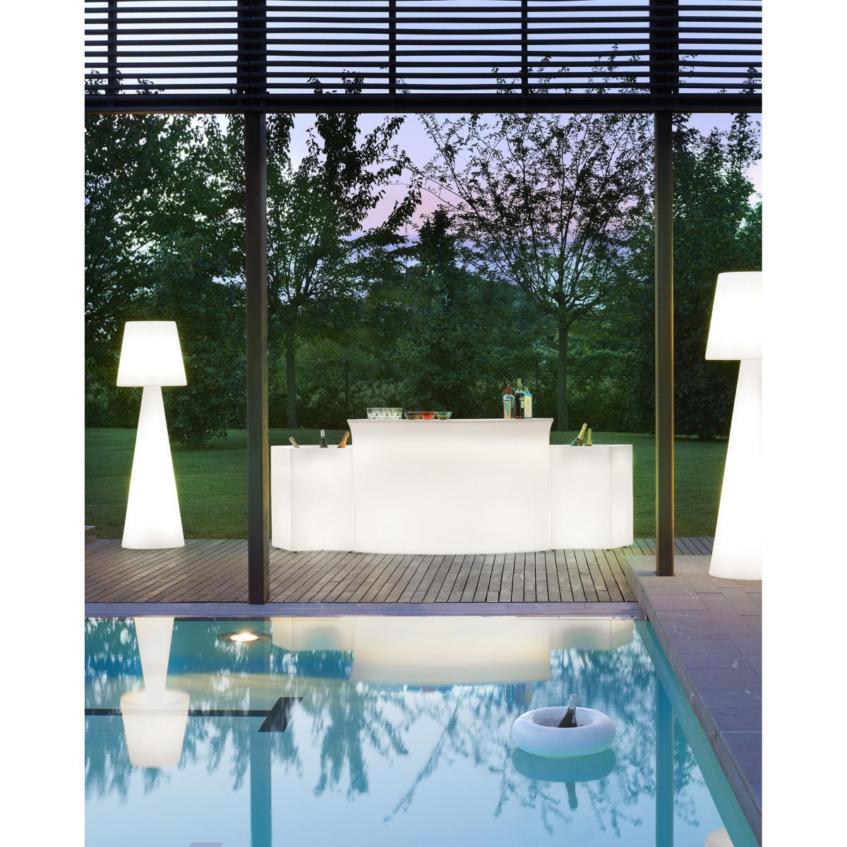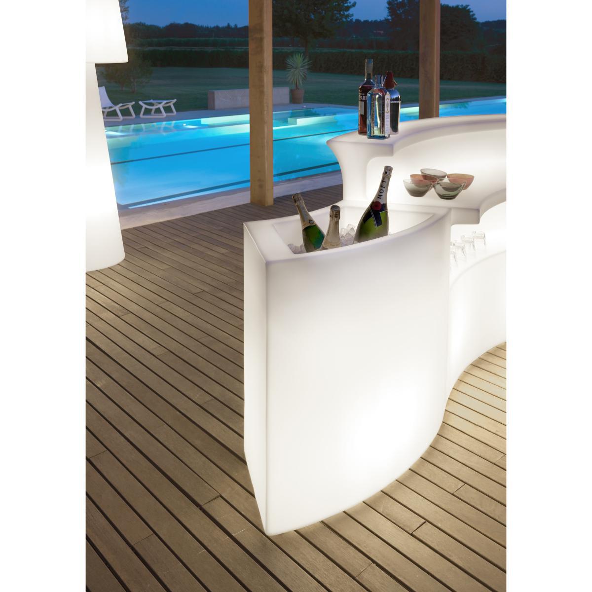 This luminous ice container creates a lounge and modern ambiance in your living room, garden, terrace, around your swimming-pool. The pure shape broadcasts a sweet and sensual light. Ideal for your garden parties. For a coloured light, you can put coloured bulb inside. Made of polyethylene, Ice bar is functional: it is resistant and light !.