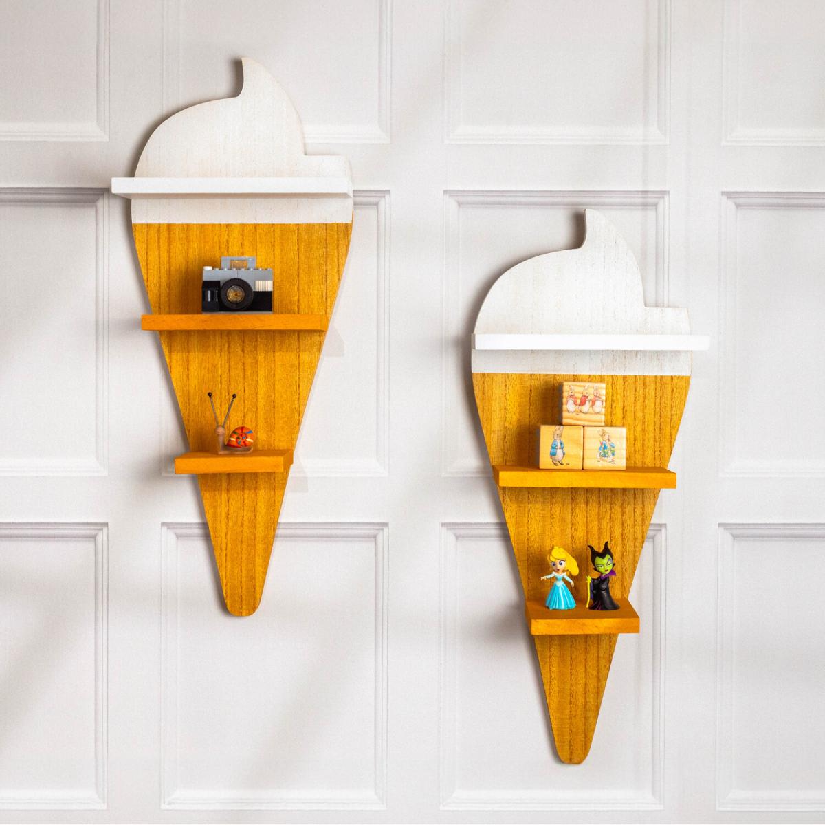 These adorable wooden shelves are crafted in the shape of ice cream cones, giving a unique and eye-catching look. Perfect in a nursery or kid's room, these shelves will look great in a bathroom, or even a kitchen, hallway or living room.