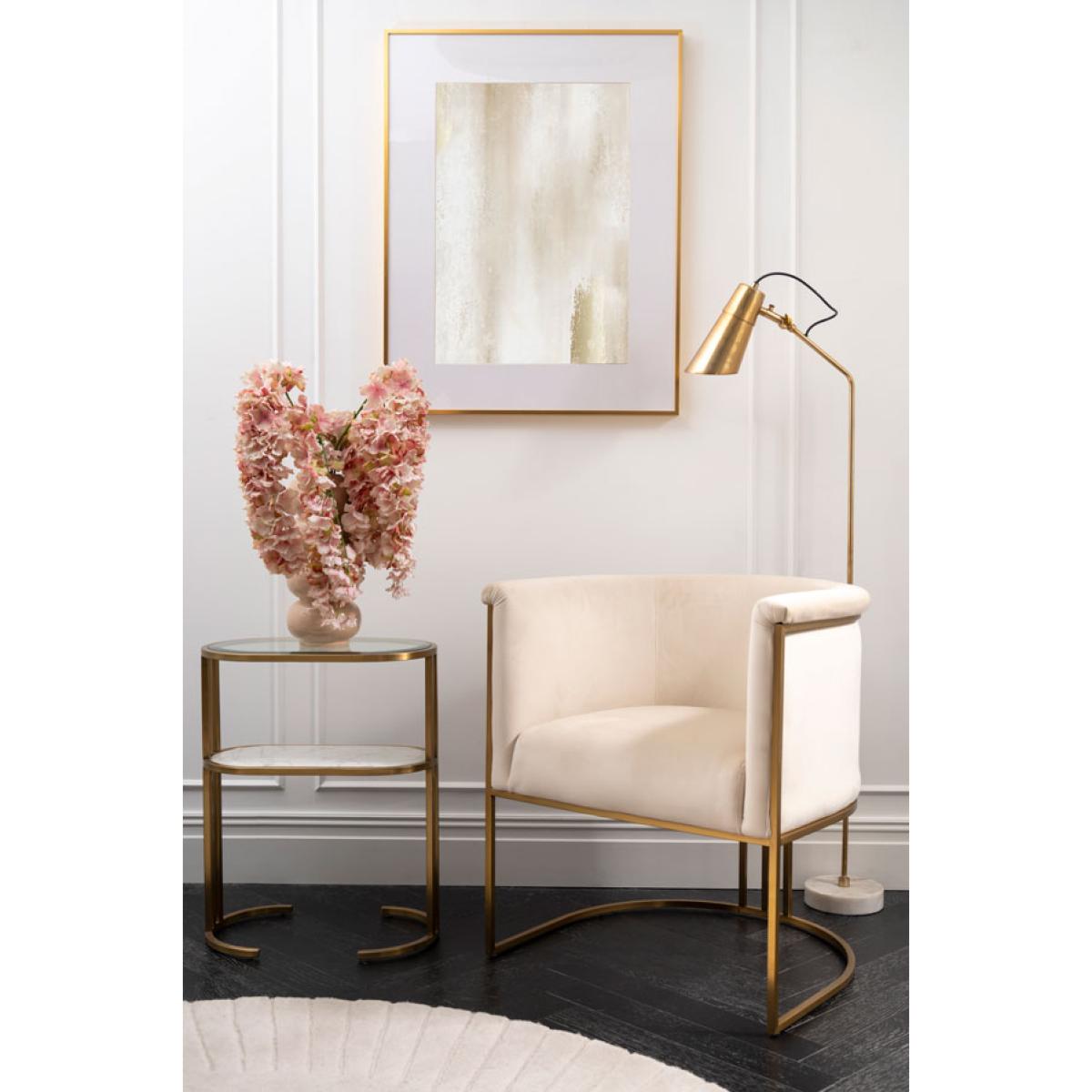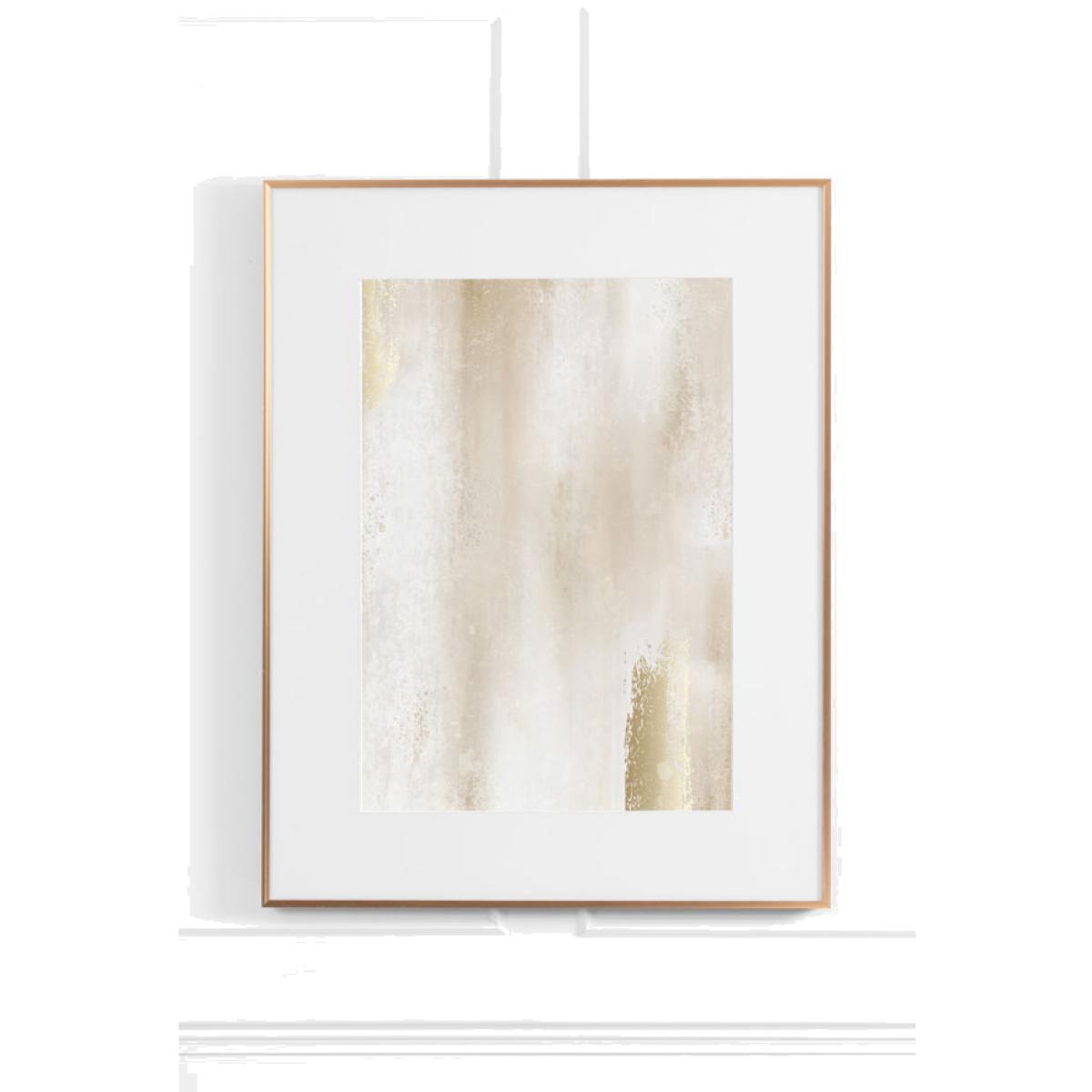 A blend of neutral toned abstract brushstrokes with lashings of metallic gold leaf. Printed on heavyweight 250gsm canvas effect material. Aluminium frame with brass finish.