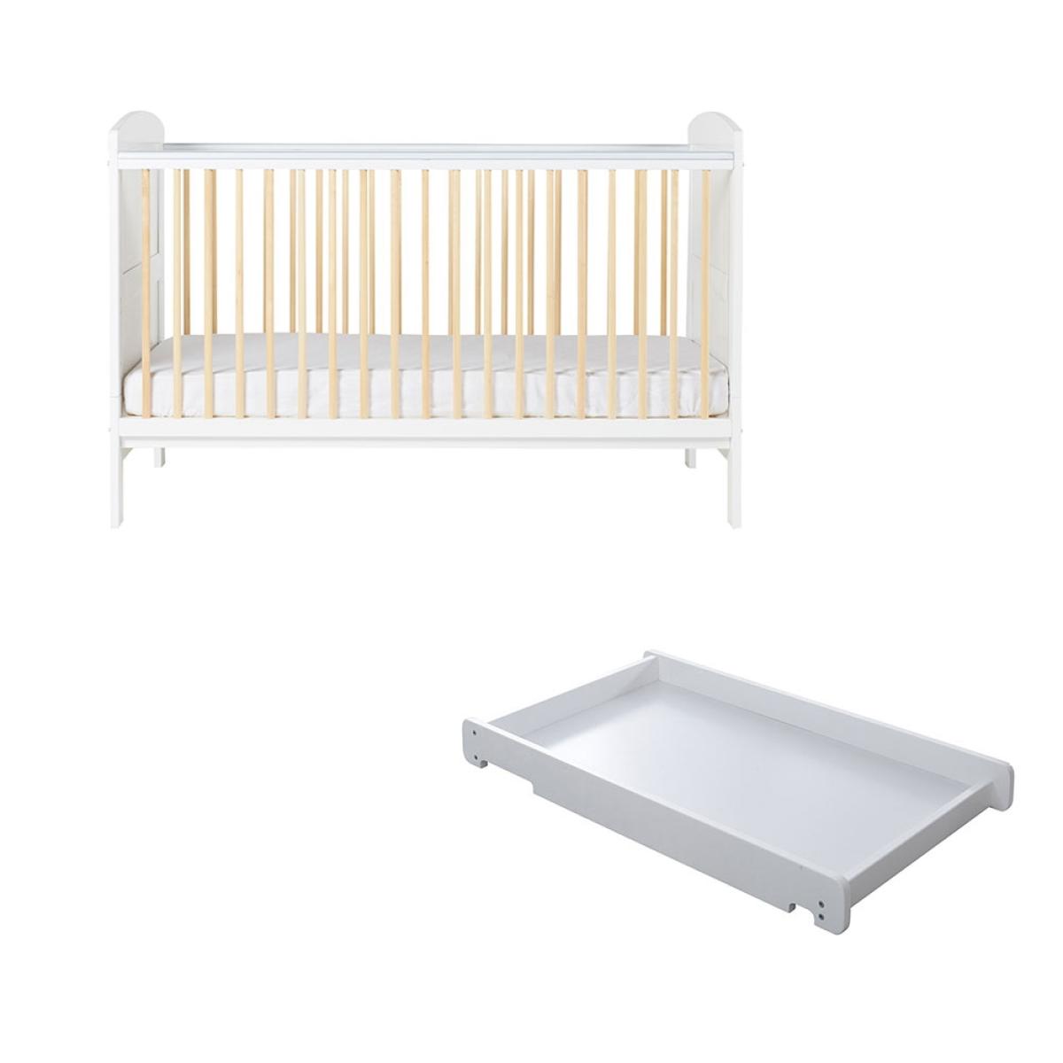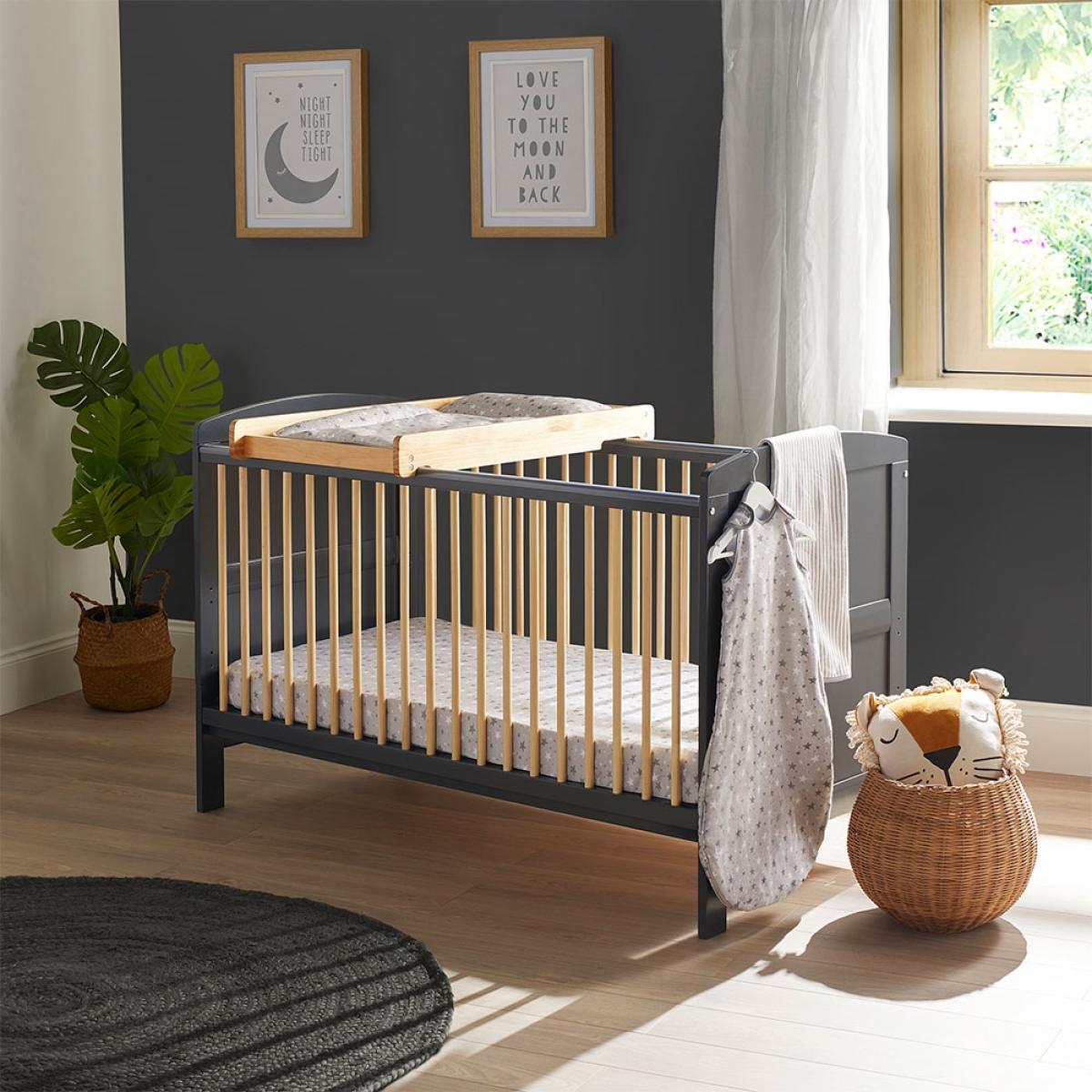Saving you space in the nursery, the Ickle Bubba Coleby Scandi Classic Cot Bed and Cot Top Changer comes to the rescue! Eliminating the need for a baby changing table - the removable cot top changer allows you to make better use of limited floor space. Simply attach to the top of the Scandi Coleby Cot and add a standard sized changing mat for quick and easy cleanups. The cot bed design is practical too! Featuring teething rails, 3 adjustable base heights and rounded slats - your baby is kept safe at every stage of their development. Later converting into a toddler bed stage, the wooden frame can continue to be used up until the age of 4. Choose from the two-tone colourways and pick out other essential pieces from this practical and stylish nursery range from Ickle Bubba!.