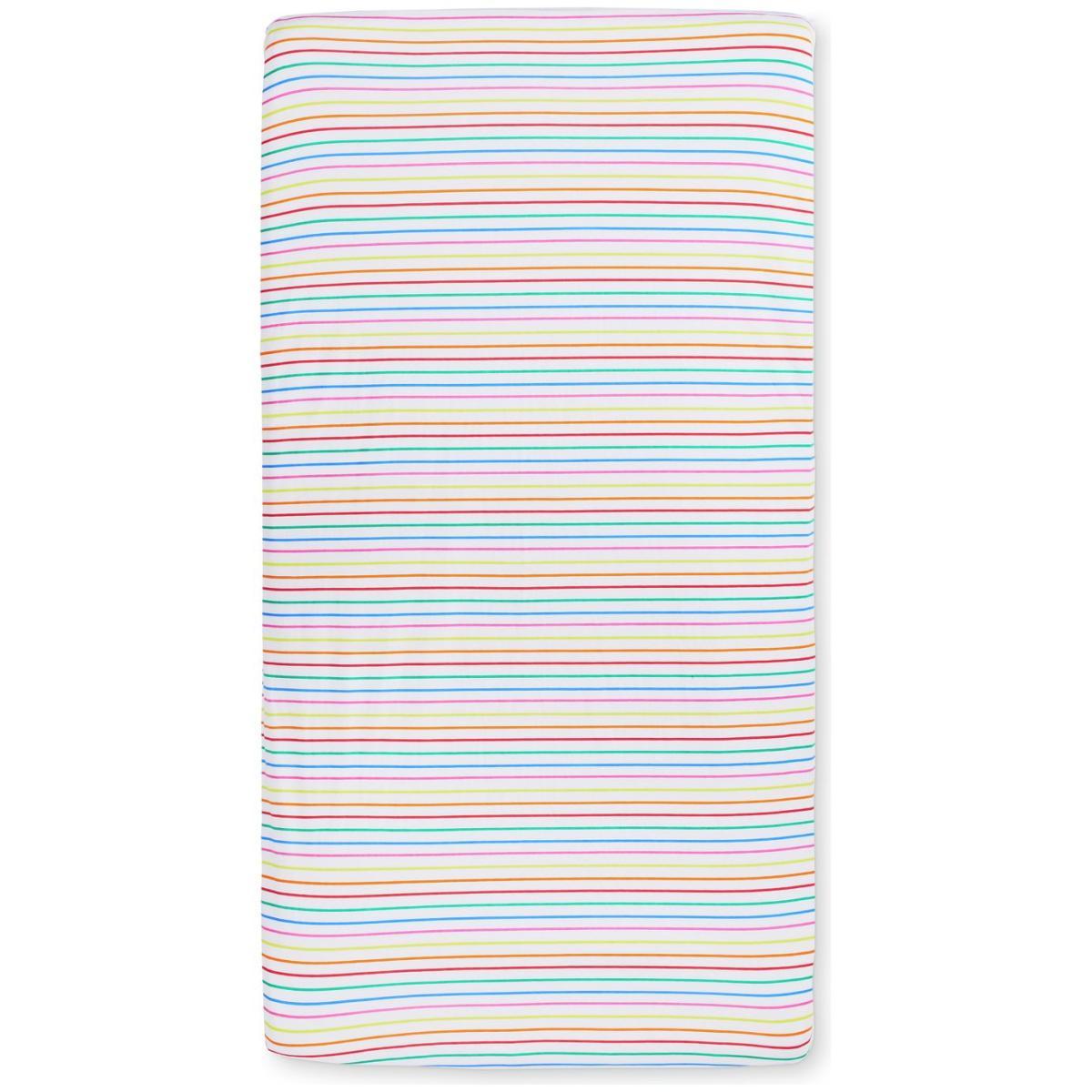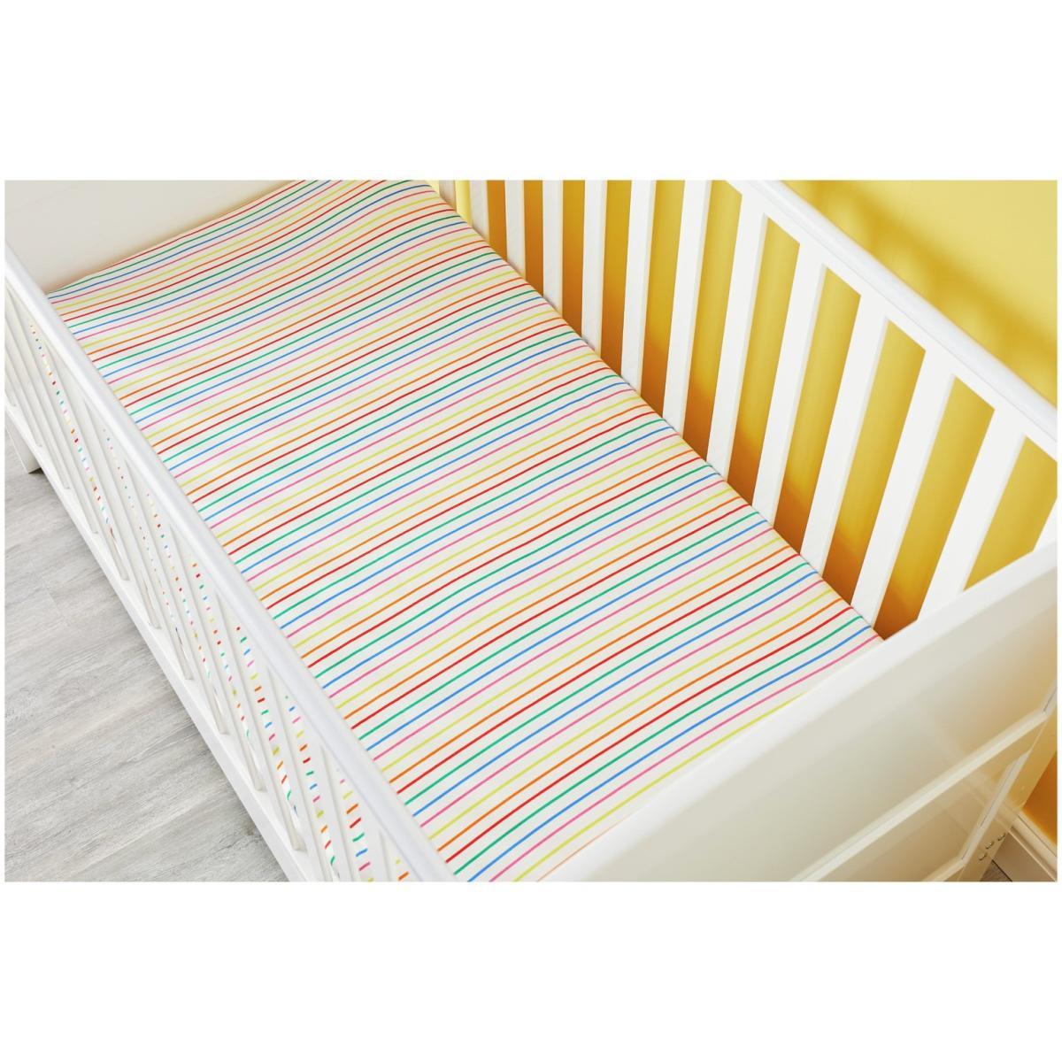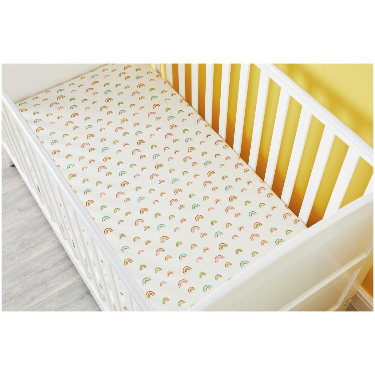 I love this rainbow fitted sheet for its cheerful, versatile design-perfect for adding a pop of colour to any nursery or child's room. Its simple stripes make it easy to pair with a variety of bedding and decor styles, from Scandi minimalism to more playful, vibrant schemes. Practical tips include layering it over neutral tones to let the pattern stand out or mixing with pastel accessories for a soft, cohesive look. Because it’s cotton, it’s also a practical choice, breathable for little ones and easy to wash, making it a smart addition to any child's sleep space.