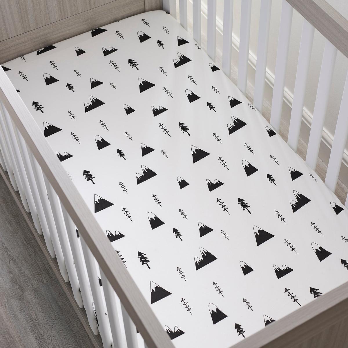 Ickle Bubba Pack of 2 Mono Mountains Fitted Cotbed Sheets Black/white