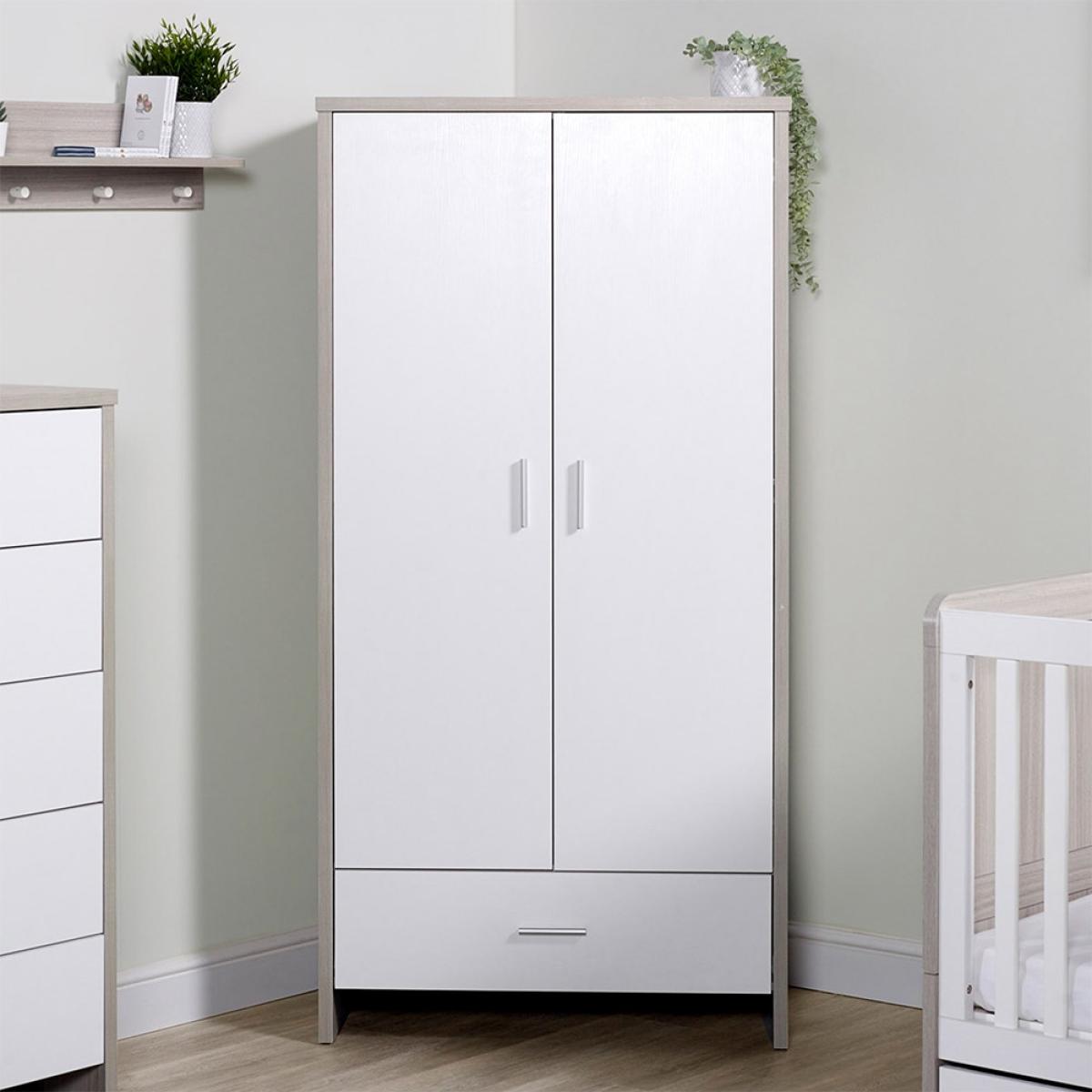 Keep your kiddies room neat and tidy with the Pembrey Wardrobe from Ickle Bubba - everything can be tucked away in this double wardrobe! Featuring 2 hanging rails with a full-length drawer underneath, there's plenty of space for all their clothes, spare bedding and even room for toys and bedtime books at the bottom. With 3 neutral colours available, this wardrobe will have no issues blending perfectly with your existing furniture whilst teaching your little monkey to tidy up once they've gotten big enough to! With matching furniture available from the Pembrey collection, complete the look with the other gorgeous pieces.