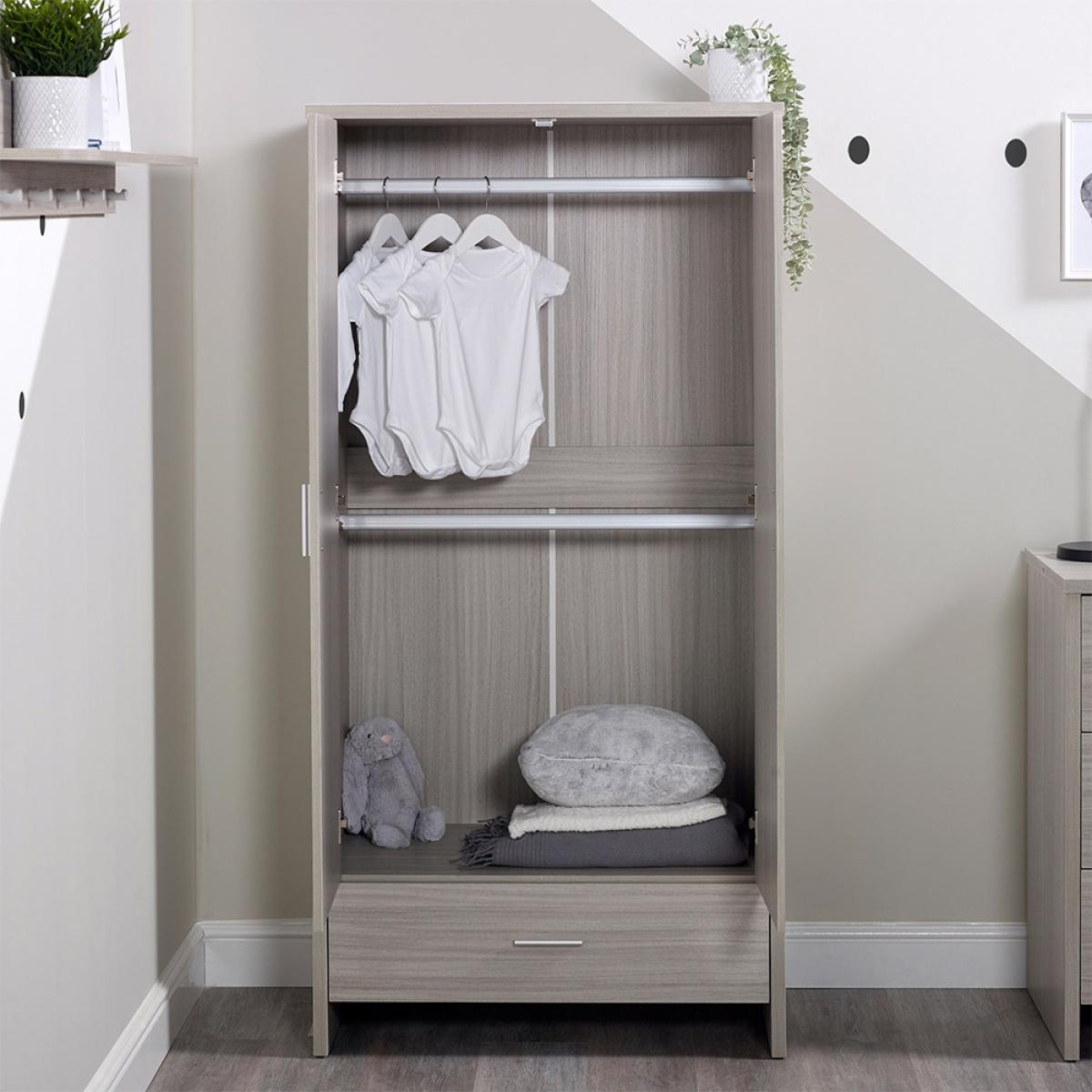 Keep your kiddies room neat and tidy with the Pembrey Wardrobe from Ickle Bubba - everything can be tucked away in this double wardrobe! Featuring 2 hanging rails with a full-length drawer underneath, there's plenty of space for all their clothes, spare bedding and even room for toys and bedtime books at the bottom. With 3 neutral colours available, this wardrobe will have no issues blending perfectly with your existing furniture whilst teaching your little monkey to tidy up once they've gotten big enough to! With matching furniture available from the Pembrey collection, complete the look with the other gorgeous pieces.