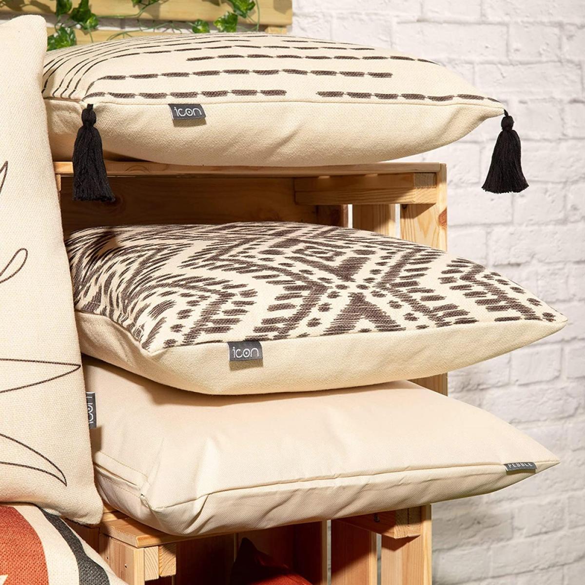 I love this boho cushion for its striking batik damask pattern, which adds a distinctive, global-inspired touch to outdoor and indoor spaces. It works well in relaxed, eclectic interiors or tropical-inspired schemes, pairing beautifully with rattan furniture, wicker, or even crisp white garden chairs for a bold contrast. Practical styling tips include mixing it with other textured cushions in earthy tones or vibrant shades to bring a layered, inviting vibe to sofas or patio furniture. Its durable outdoor fabric makes it perfect for garden seating, while its eye-catching design can elevate a simple terrace or conservatory, offering both comfort and visual interest.