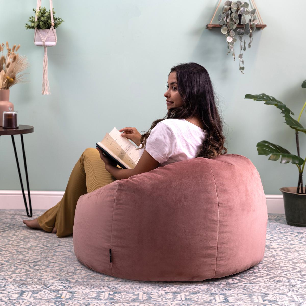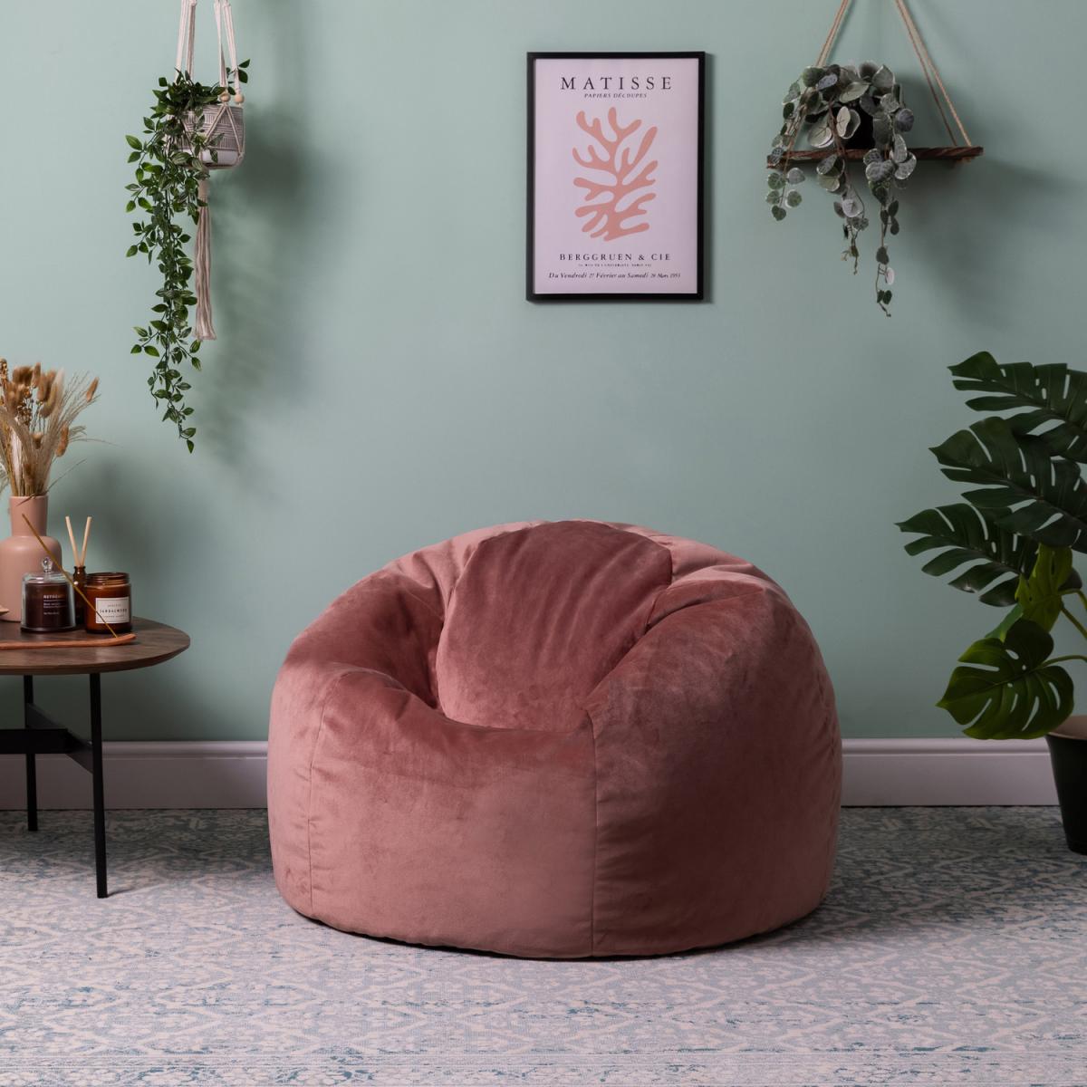 I love this soft pink beanbag for adding a touch of cosy elegance to both contemporary and more relaxed interiors. Its velvet finish brings a subtle luxe feel that works well in living rooms, bedrooms, or even creative lounges. Because of its rounded shape and plush texture, it invites casual seating and creates an inviting vibe. For styling, consider pairing it with neutral tones or soft pastels to keep the look cohesive, or add a pop of colour with cushions or throws nearby. It's versatile enough to be a statement piece or a complementary addition, especially in schemes aiming for comfort without sacrificing style.