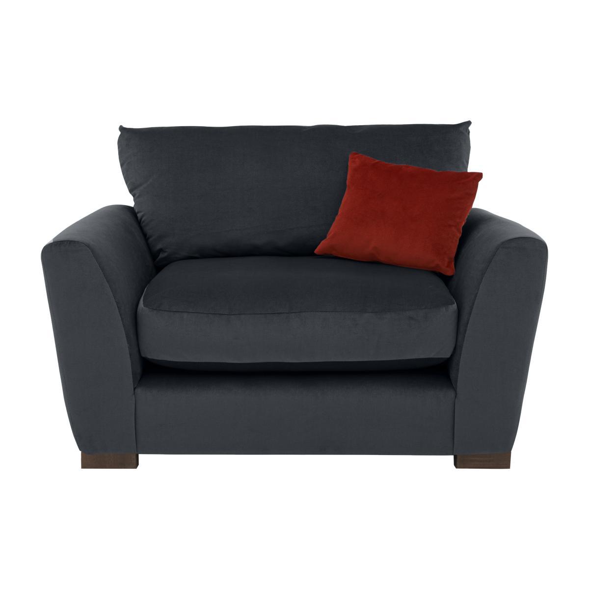 Chill out in relaxed yet luxurious style on an Icon sofa or chair, with fabulously soft velvet upholstery you’ll love to snuggle up on. Kick back and enjoy the incredible comfort of roomy, sprung seats with deep, super squishy seat cushions. Or, if you prefer a firmer sit, a foam seat upgrade is available. Cleverly hidden glides mean that the Icon sofas, chairs and footstools almost seem to float. Choose between gorgeous colours including soft greys and warm reds, with accent scatter cushions included in the price. Beautifully handcrafted in the UK, exclusive to Furniture Village. Luxe velvet upholstery, relaxed deep-seated comfort. Hidden glides for a ‘floating’ look. Sprung seat, foam seat cushion upgrade available. Everything about the Icon fabric snuggler chair is made to pamper you. First, there’s the roominess of the wide, sprung seat. Big enough for two to cuddle up or for one to stretch out. Then there’s the relaxed and inviting style, with extra deep, luxury fibre filled seat and back cushions that cocoon you in comfort. You can upgrade to foam filled seat cushions if you want a slightly firmer feel. Finally, this relaxed, laid back cuddle chair has amazingly soft and luxe velvet upholstery in your choice of colour – we have soft neutrals and brighter bolds so you can find something to suit your décor. A fabric scatter cushion in a contrasting shade is included in the price. The Icon fabric snuggler chair is handcrafted in Britain, and is exclusive to Furniture Village.