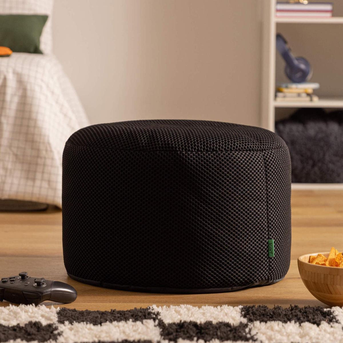 Icon Gaming Performance Mesh Round Footstool Bean Bag - Black