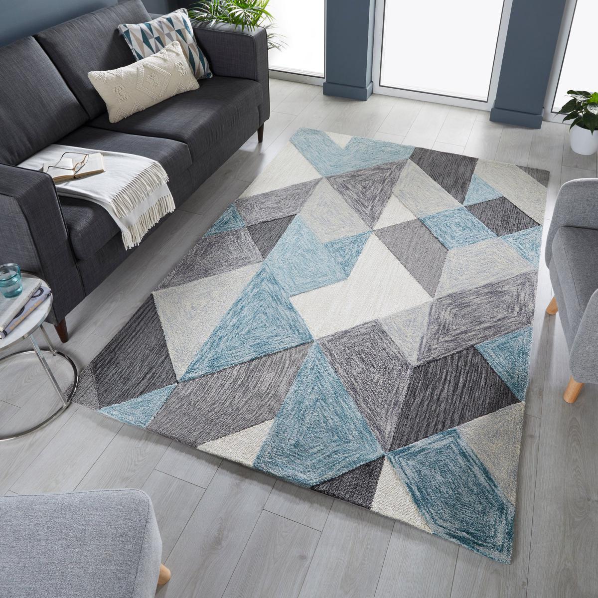 Introducing Icon Geometric rug, pairing on-trend shades with a geo-inspired design. Tufted in 100% Polyester, Icon Geometric rug uses a high/low effect to add depth and shape. Super-soft underfoot with minimal shedding, perfect for on-the-go homes. We love using the Icon Geometric rug to add a touch of comfort to living rooms and bedrooms. This is a machine-made rug. When opening, re-roll your rug pile out and leave in a warm room for 24 hours before putting in place, this will help to reduce wrinkles and curling from packing. A small amount of fibre loss is normal on a new rug. Do not pull any loose threads, please cut them carefully with scissors to remove. Avoid prolonged exposure to direct sunlight as this may cause fading of the colour. Turn your rug regularly to ensure even wear and reduce pressure marks from furniture. Please keep away from fire. Please do not leave babies or young children unsupervised on this rug.