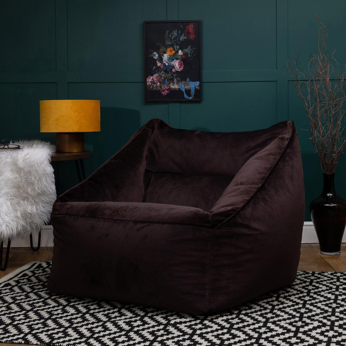 icon Giant Velvet Armchair Bean Bag - Chocolate Brown