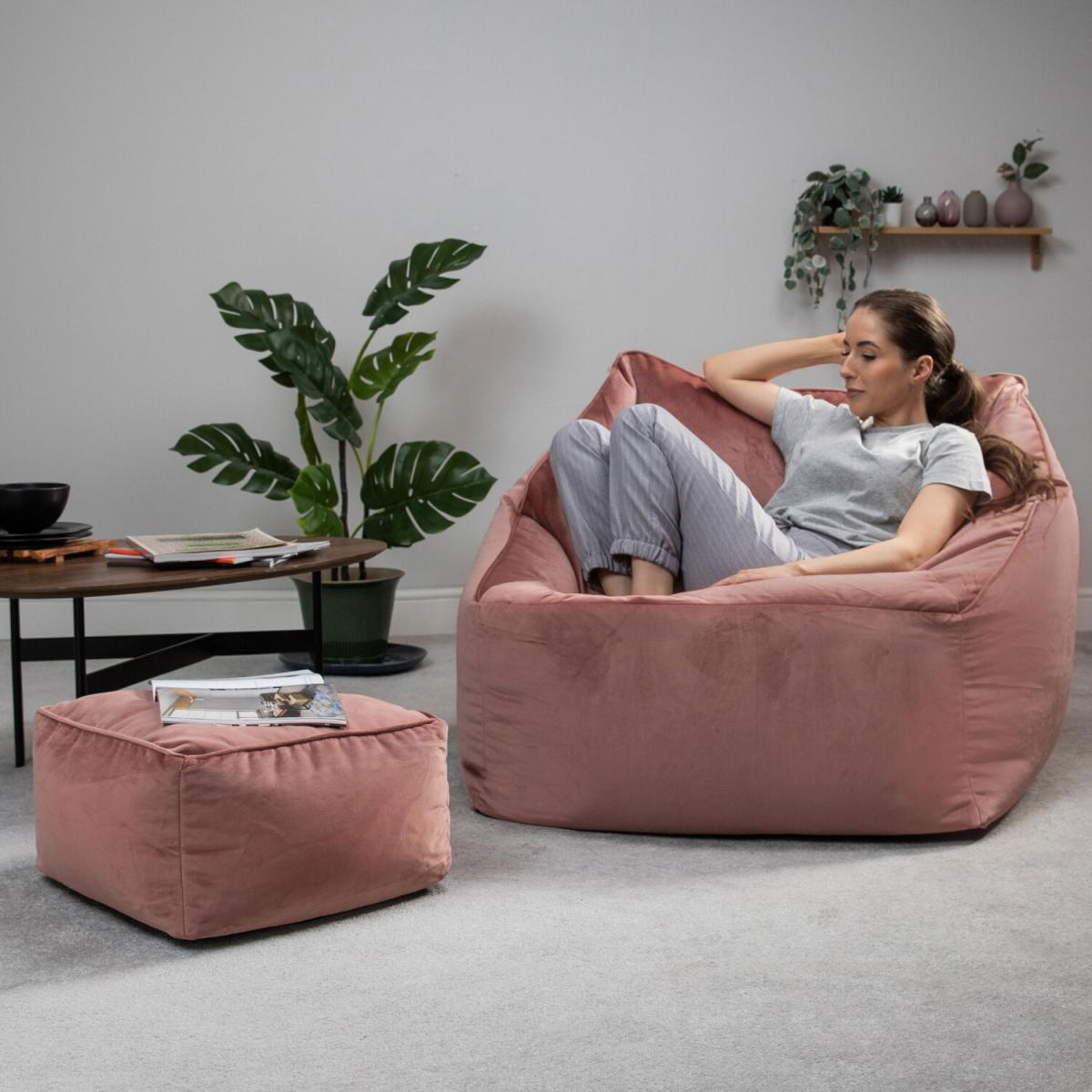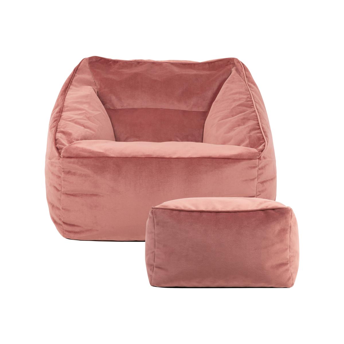 icon Giant Velvet Armchair Bean Bag with Footstool - Pink
