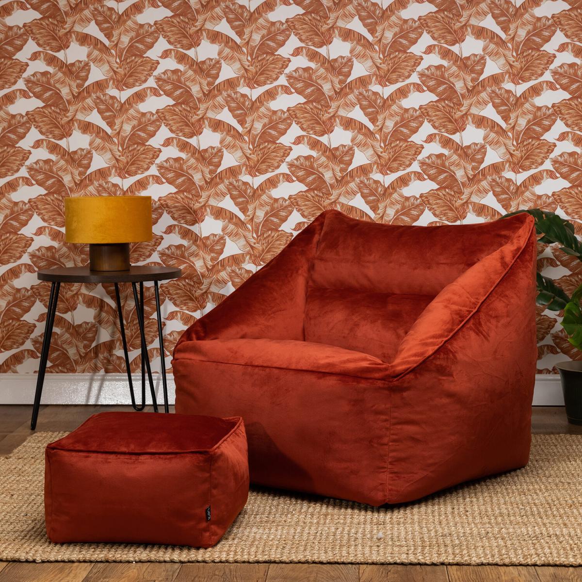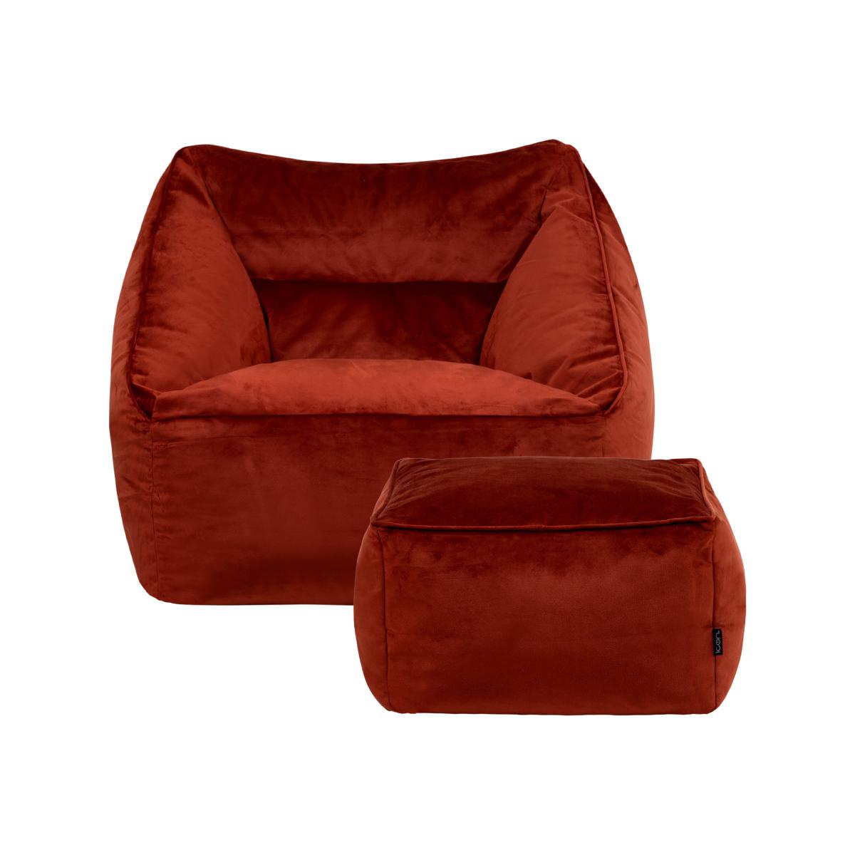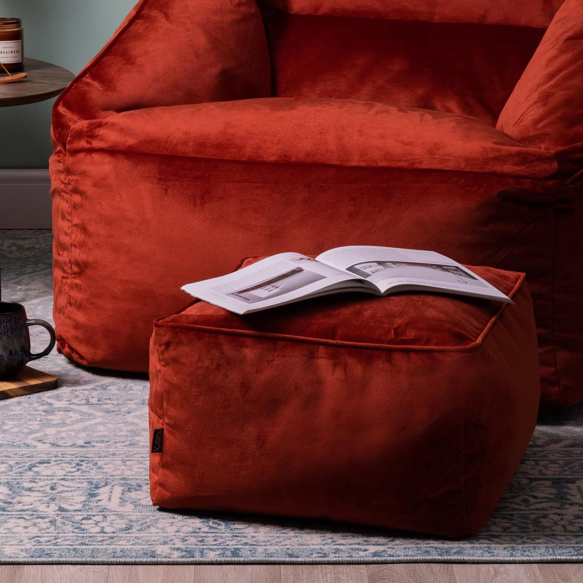 icon Giant Velvet Armchair Bean Bag with Footstool - Terracotta
