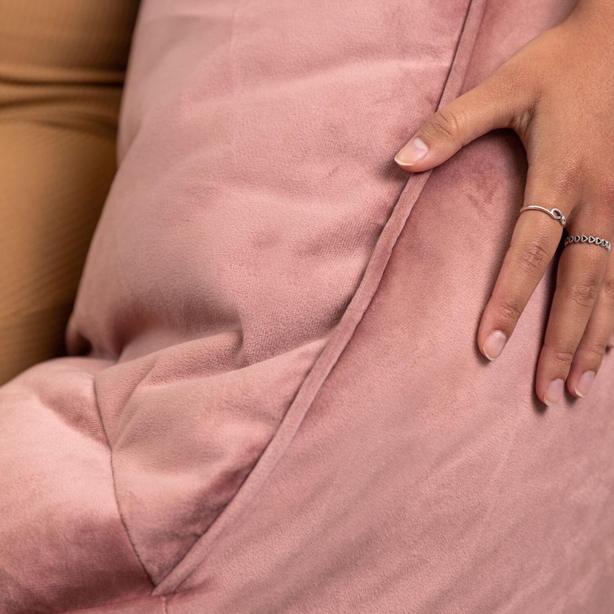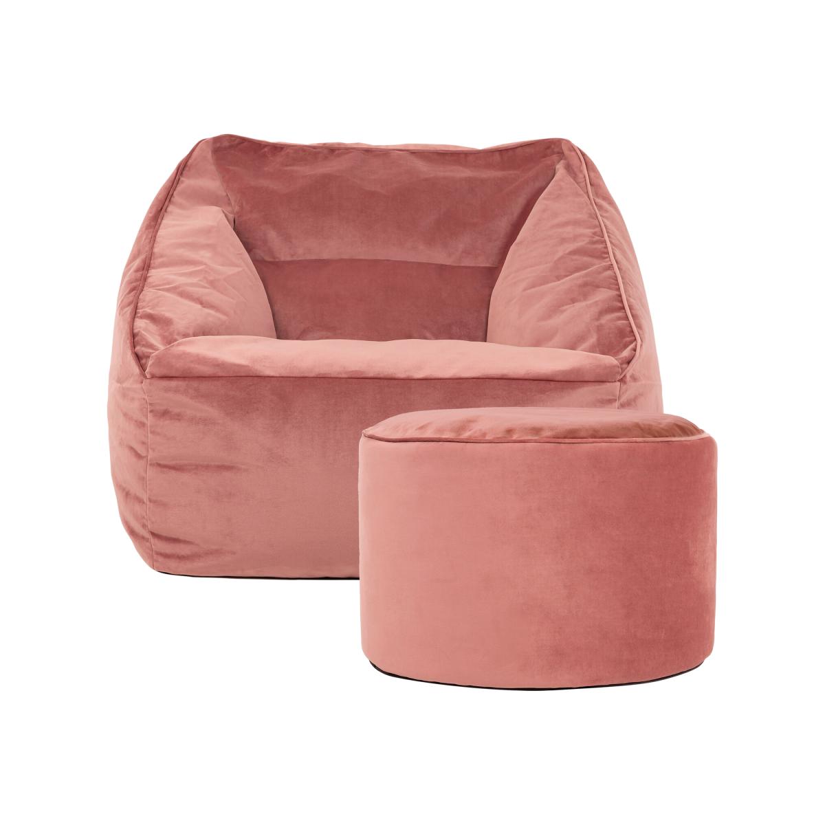 icon Giant Velvet Armchair Bean Bag with Round Footstool - Pink