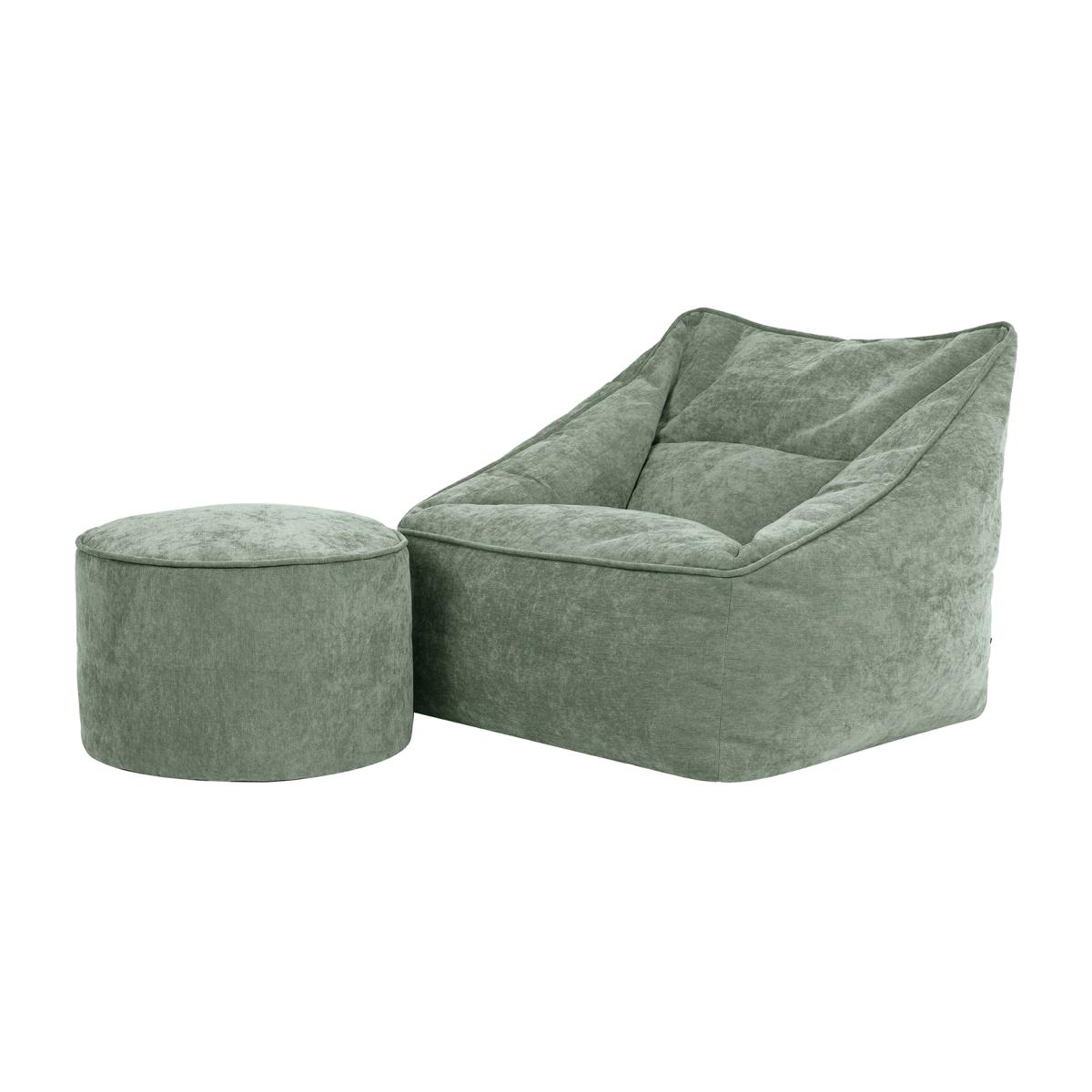icon Natalia Chenille Armchair Bean Bag and Pouffe Set Giant Bean Bag Chair - Sage Green
