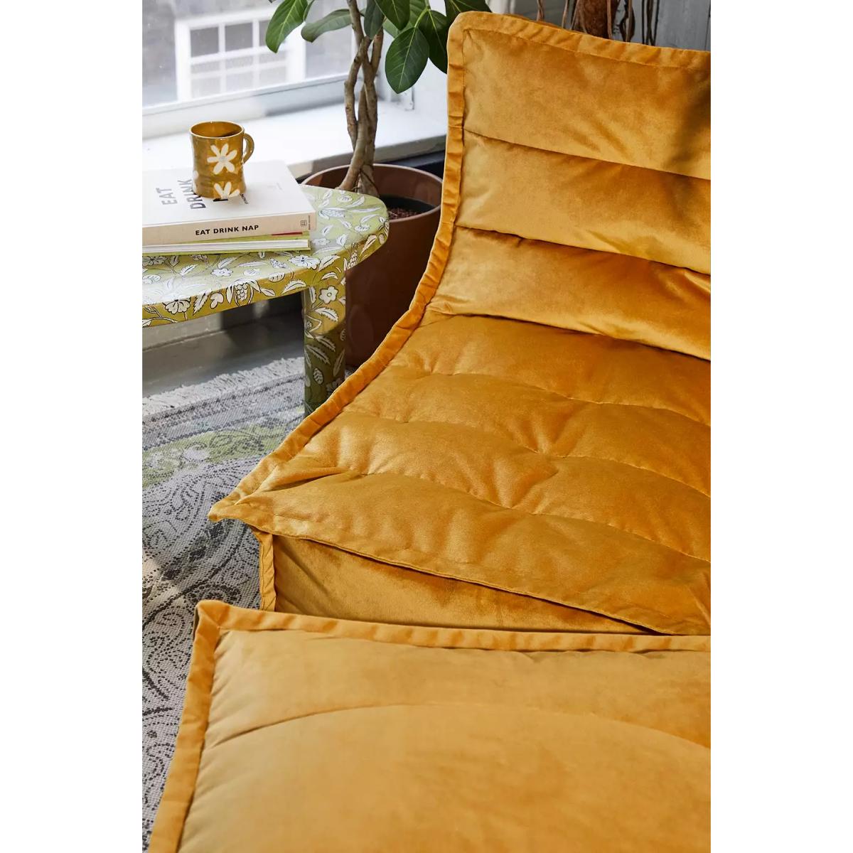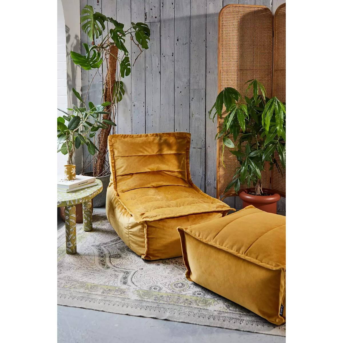 Relax after a long day in the Dolce Velvet Lounger and pouffe. L-shaped beanbag complete with a luxuriously soft velvet outer and bean filling. Rest into the lounge chair with the pouffe to lean on. *Online return only. This item cannot be returned instore. Please note furniture items currently cannot be shipped to Northern Ireland or The Republic of Ireland. Delivery of large furniture items may take 1-2 weeks and are therefore not eligible for Next Day Delivery.* **Content + Care** \- Velvet \- Spot clean \- Assembly required \- Items may receive part-filled in more than 1 box **Size** \- Bean Bag Lounger: W: 79cm x D: 90cm x H: 68cm \- Pouffe: W: 71cm x D: 91cm x H: 32cm