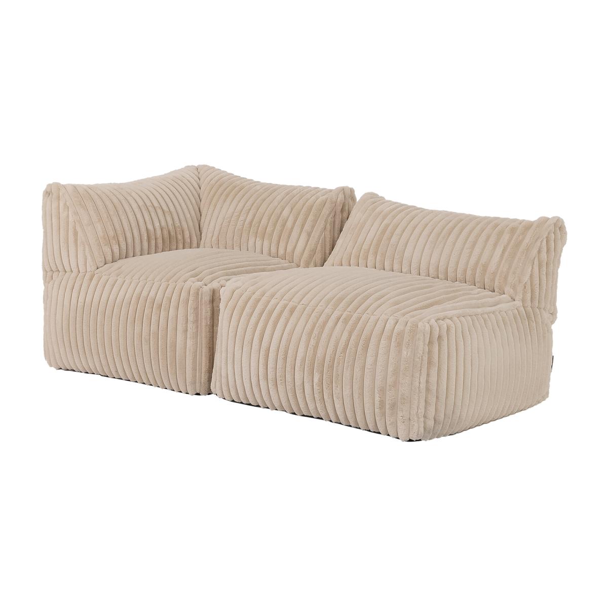 Wrapped in soft, buttery ribbed faux fur, each individual piece features a water-resistant base, double zips for security, and double-stitched seams for extra durability. Personalise your seating arrangement effortlessly with our Tetra modular bean bag sofa, ensuring your space reflects your unique style and comfort preferences. With effortless portability, this lightweight sofa allows you to reconfigure your setup at a moment's notice, ensuring comfort is always within reach. From two seats to five, left or right corner configurations, with or without a pouffe, the choice is yours with this customisable bean bag sofa.
