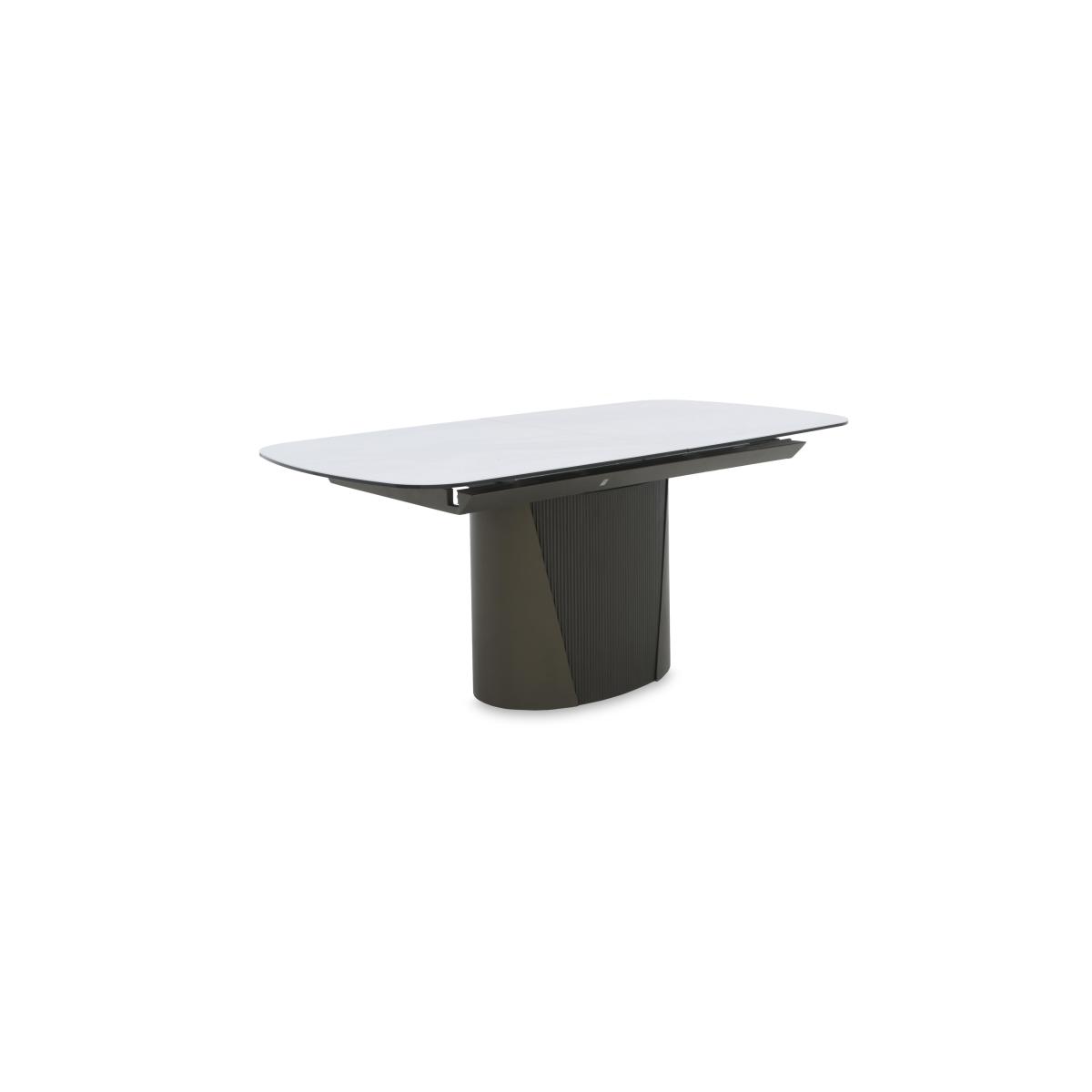 We couldn’t help but award this range of stunning dining room furniture iconic status and it’s easy to see why. The Icon collection’s showstopping extending dining table has a stunning ceramic top in a choice of colours. Bonded to glass, it’s every bit as hardwearing as it is beautiful. And this dining table’s pedestal base is definitely a masterpiece of modern design, finished in metal and embellished with fluting. Create your own fabulous dining set by pairing the extending dining table in your favourite finish with a set of the range’s elegant swivel dining chairs. Or just leave it to the experts and browse our wide selection of Icon dining sets, beautifully curated by our design team. With its white ceramic-topped dining table with statement metal-finished base and set of six Icon dining chairs with bronze legs, it’s easy to see why this dining set deserves its iconic status. Why you'll love it Bring home iconic dining room style. Distinctive, unique and bold, our Icon range really stands out. This oval extending dining table in this set is absolutely stunning. Stunning matt white ceramic top. A rotating section swivels to extend this table in seconds. Showstopping fluted metal pedestal base with a rich bronze-toned finish. Bonded to tempered glass, the ceramic table top is incredibly hardwearing. It’s also heatproof, scratch-resistant and chip-resistant. Dining table is available in 2 sizes. Dining set includes 6 Icon dining chairs with curved fluted backs. Beautifully soft faux leather upholstery in a choice of taupe shades. Auto-return swivel mechanism with bronze-finished metal legs. This dining set is part of the Icon range. What you need to know Dining chairs have metal frames and legs and are cushioned with foam. The small 160 cm dining table seats 6 closed and 8 when extended to 200 cm. The large 180 cm dining table seats 8 closed and 10 when extended to 230 cm. This dining table is very heavy and should not be moved once in place. We recommend using coasters and placemats at all times. Easy to care for. Simply wipe with a clean, damp cloth and dry with a soft duster. Do not use abrasive cleaning products. Item code: ICONDS8WLTB-001